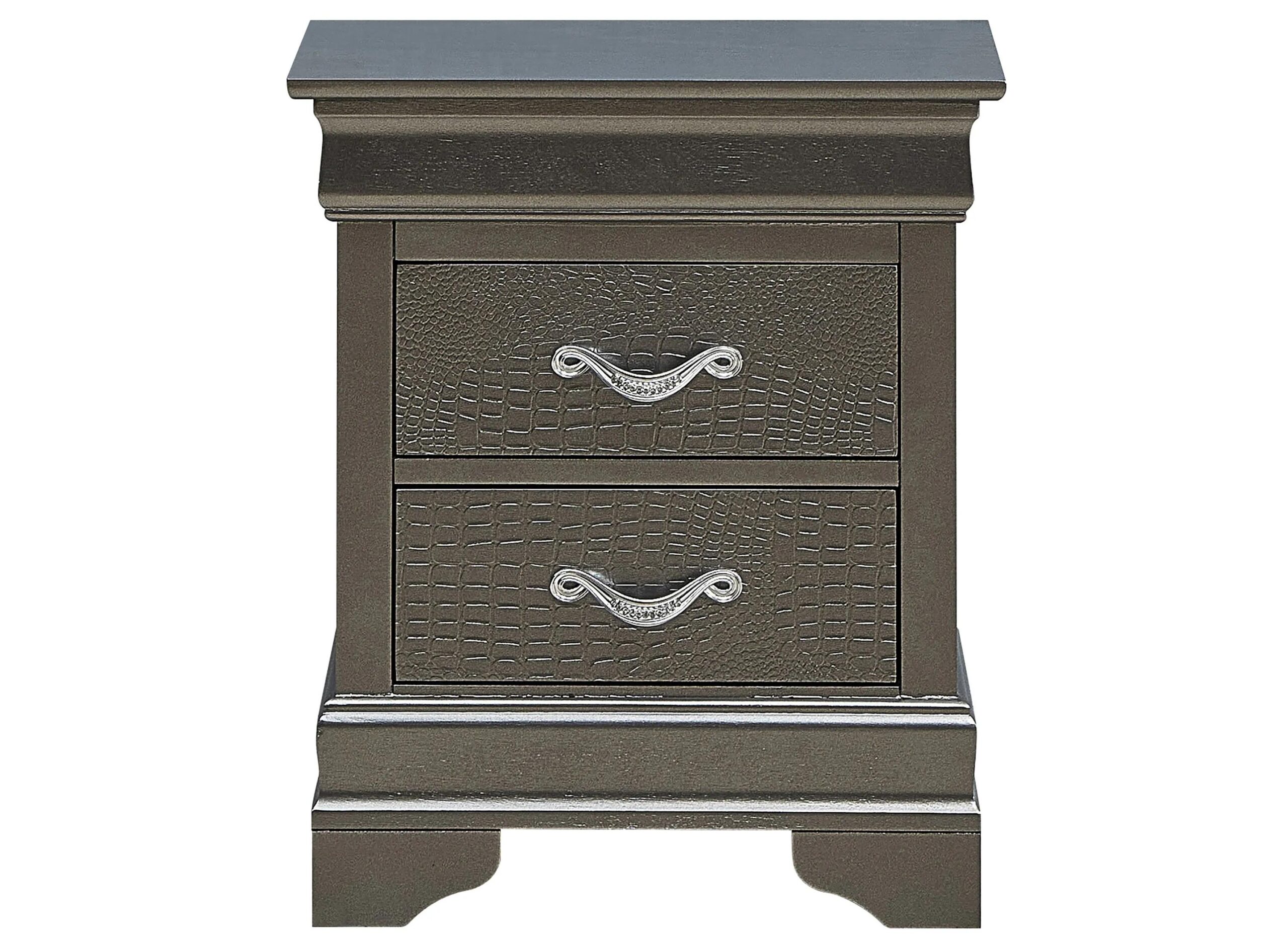 Lorana Nightstand is Finished in Real Wood Veneers over Manufactured and Solid Wood. Drawers Move on Center Supported Metal Guides and Are Dovetailed Front and Back. Corner Blocks are utilized to Support Drawer Bottoms.