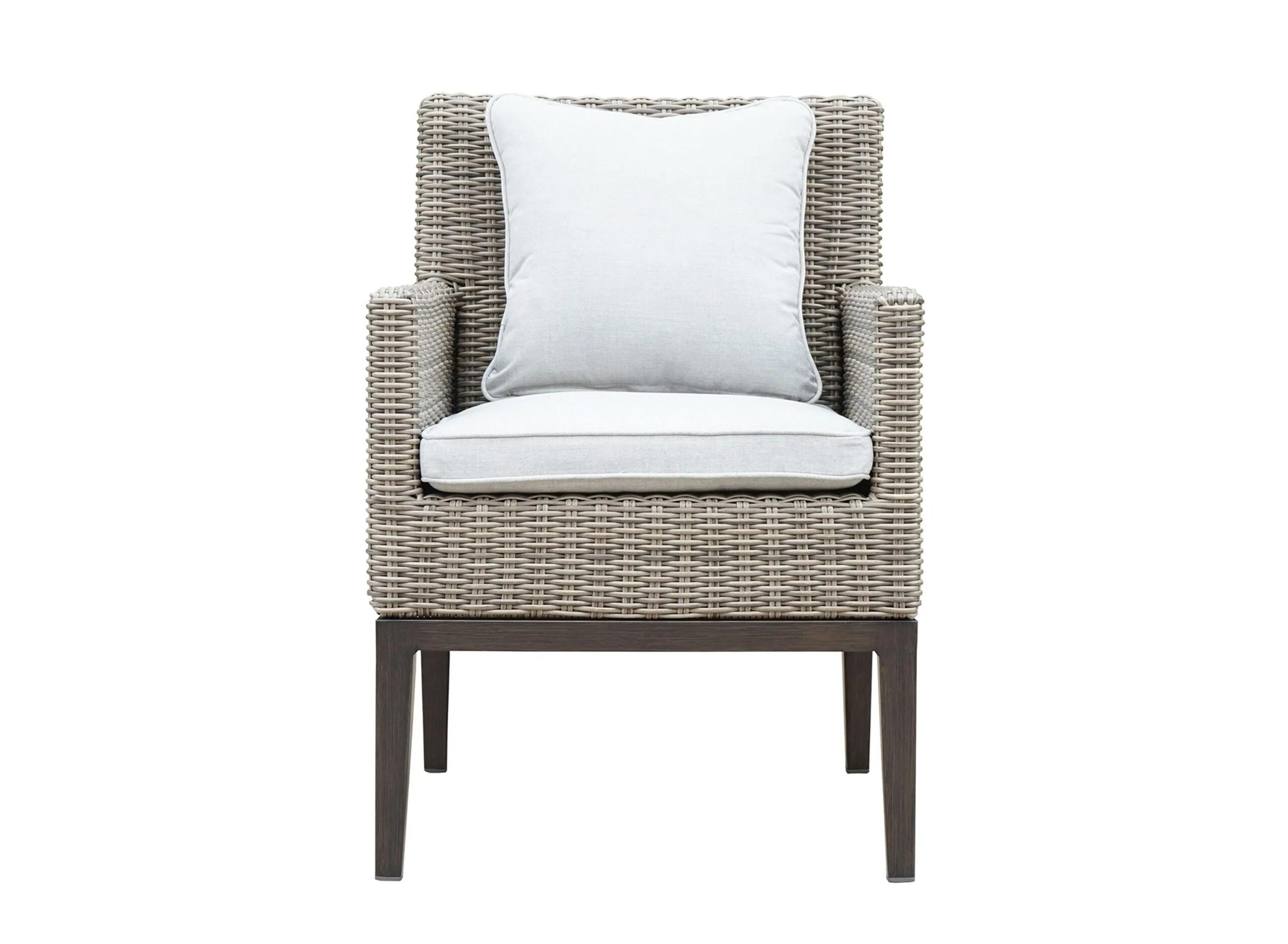 Marina Patio Armchair (Set of 2) is all-weather resin and solution-dyed acrylic cover make this chair weather and fade-resistant to withstand whatever the elements dish out. The powder-coated aluminum base and arm caps are naturally rust-resistant so you can relax.