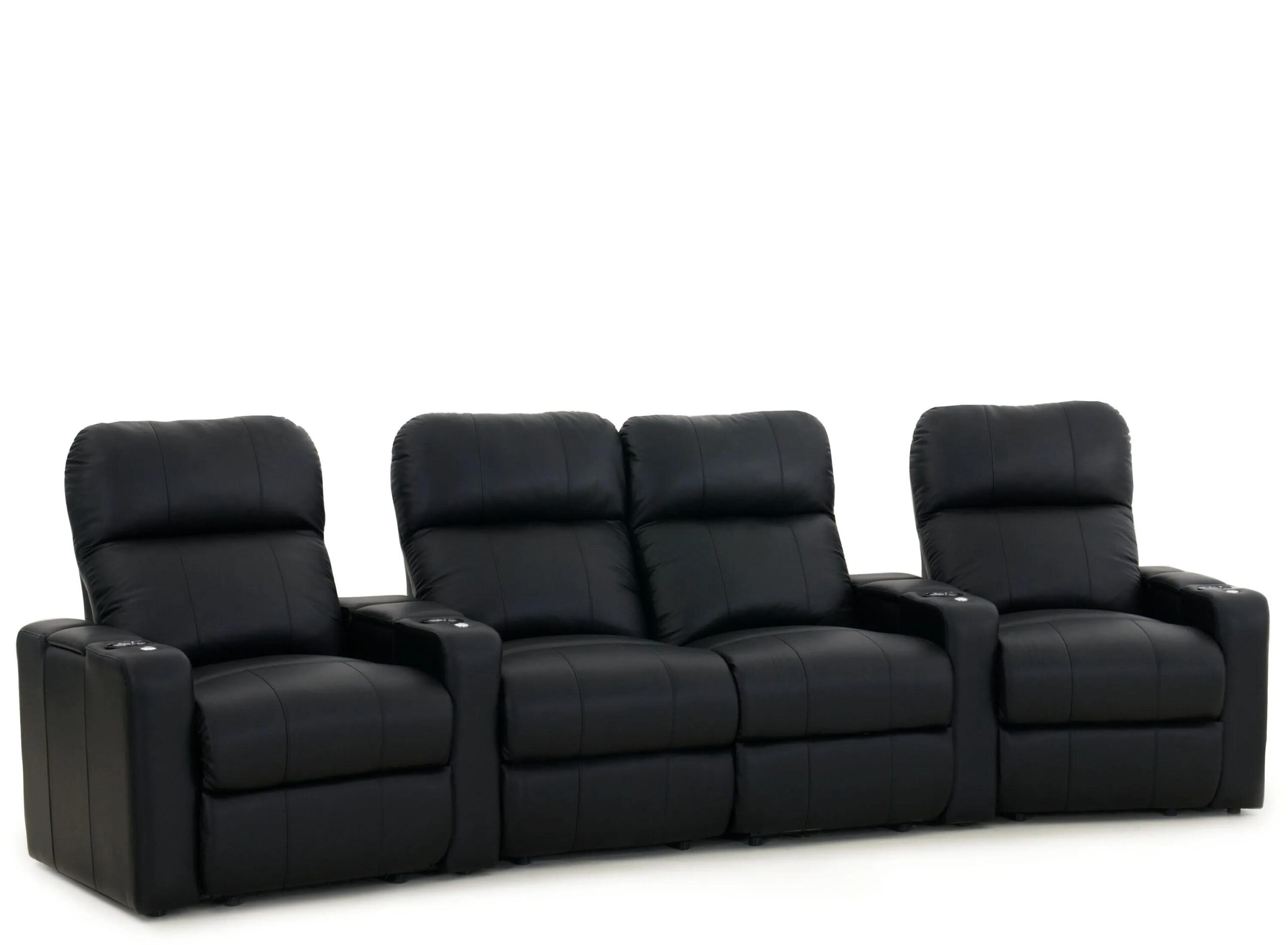 The Marquee 4-pc. leather power-reclining sectional sofa is a great addition to your home theater. This sofa is a row of 4 curved seats in black leather and it power-reclines. This piece offers a premium layer of gel-infused foam in the seat cushion for unparalleled comfort.
