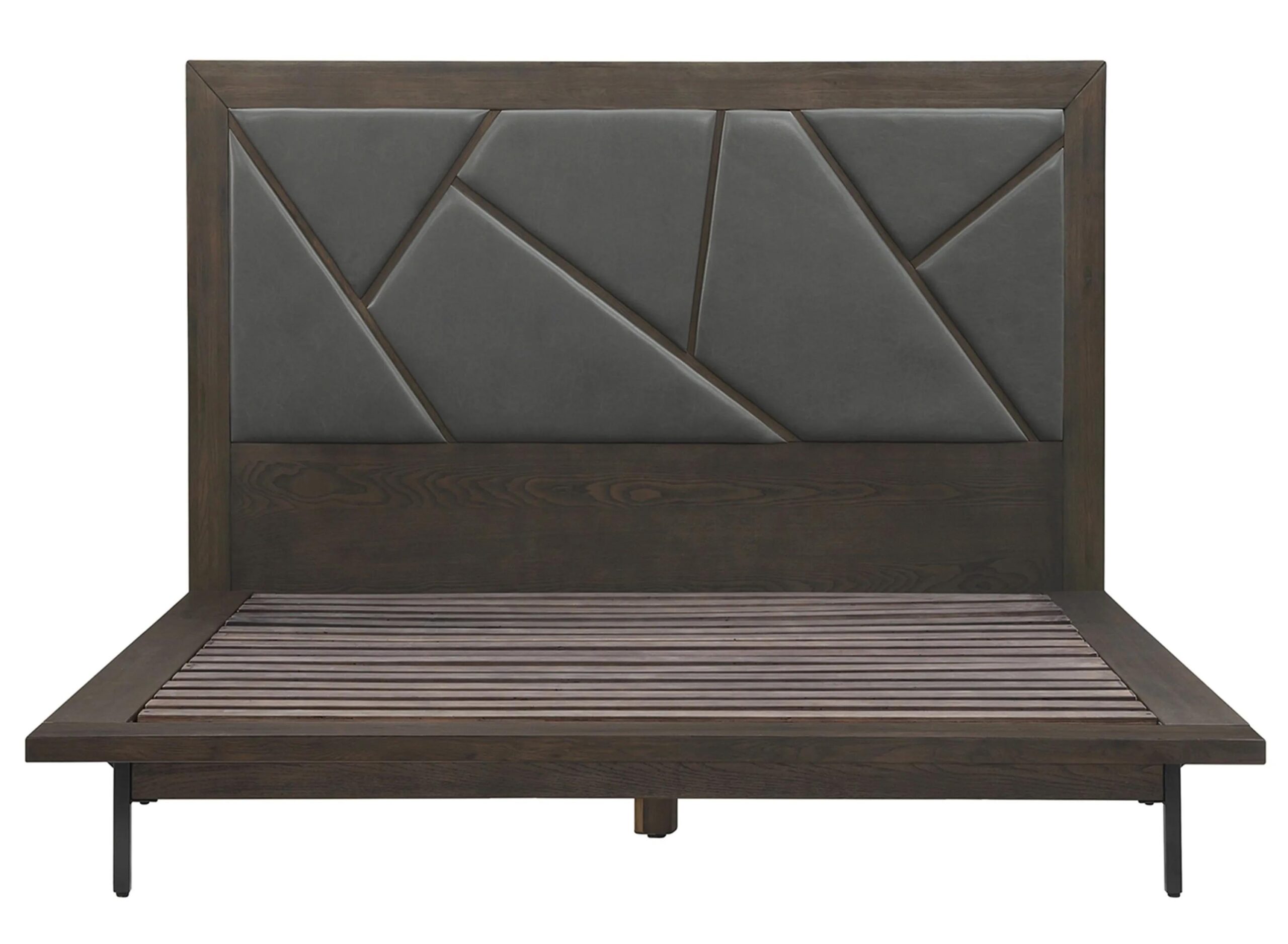 Make an elegant style statement with the Marquis Platform Bed. Its elegant, smoke oak wood frame is upgraded with faux leather accents. Creating striking and asymmetric patterns, our bed makes a powerful design statement.