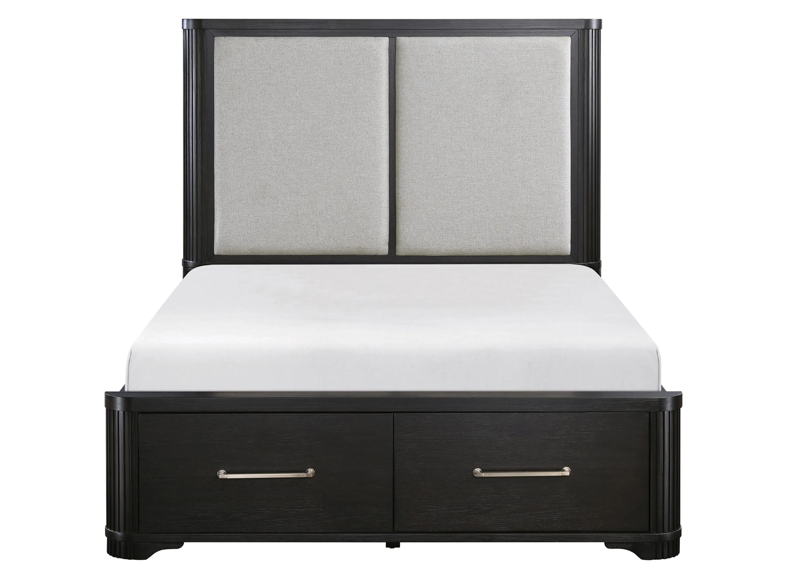Elegant modern styling comprises the design of the Maypop Platform Bed with Footboard Storage while drawing subtle inspiration from the Art Deco movement. The oak veneer of the collection features a charcoal finish providing a rich hue to the distinct wood grain.
