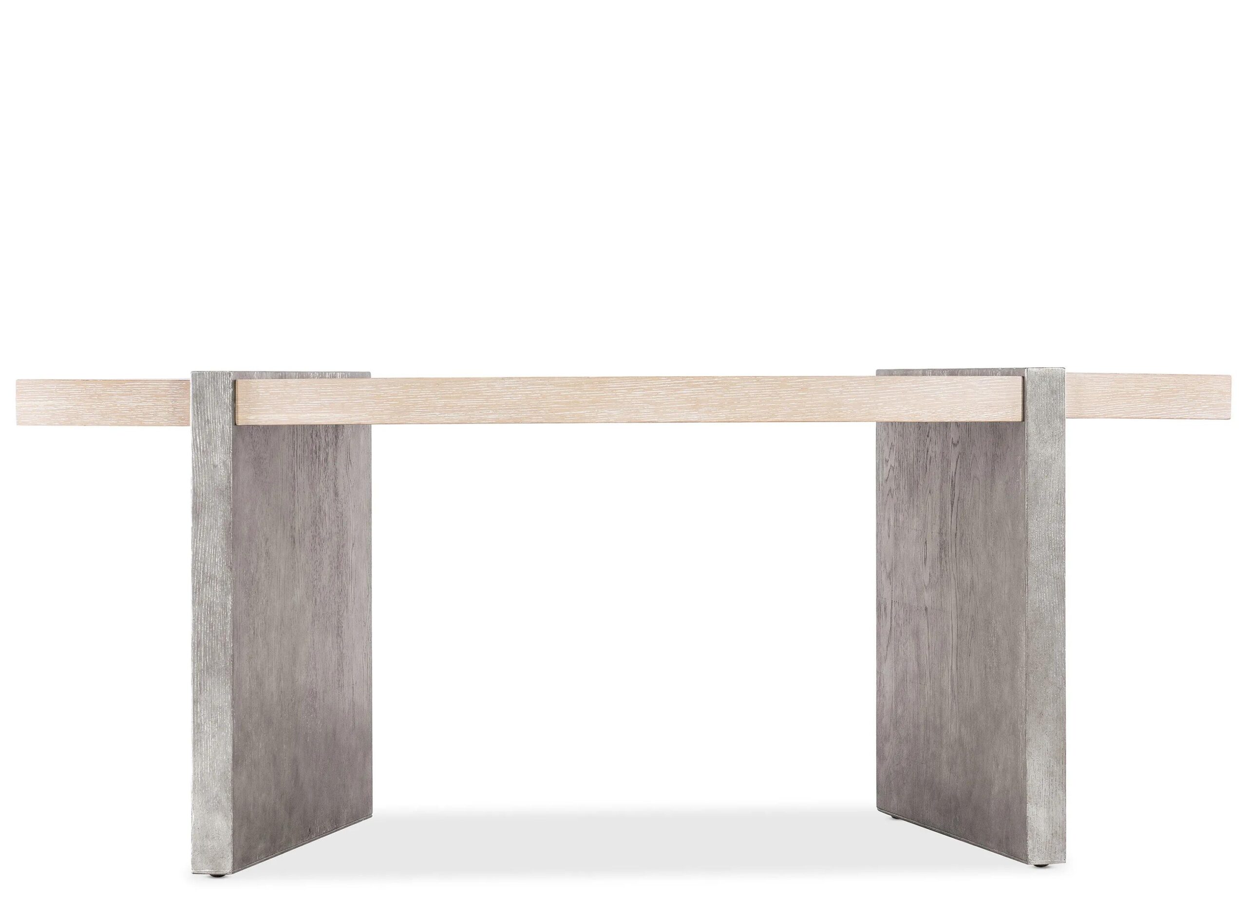Melange Selleck Writing Desk Offering a two-tone finish in a semi-circle shaped desk design contrasting Oak Veneers in a light wood finish with a shimmery silver-finished base, the Selleck Writing Desk has a calming contemporary style and a user-friendly work surface.