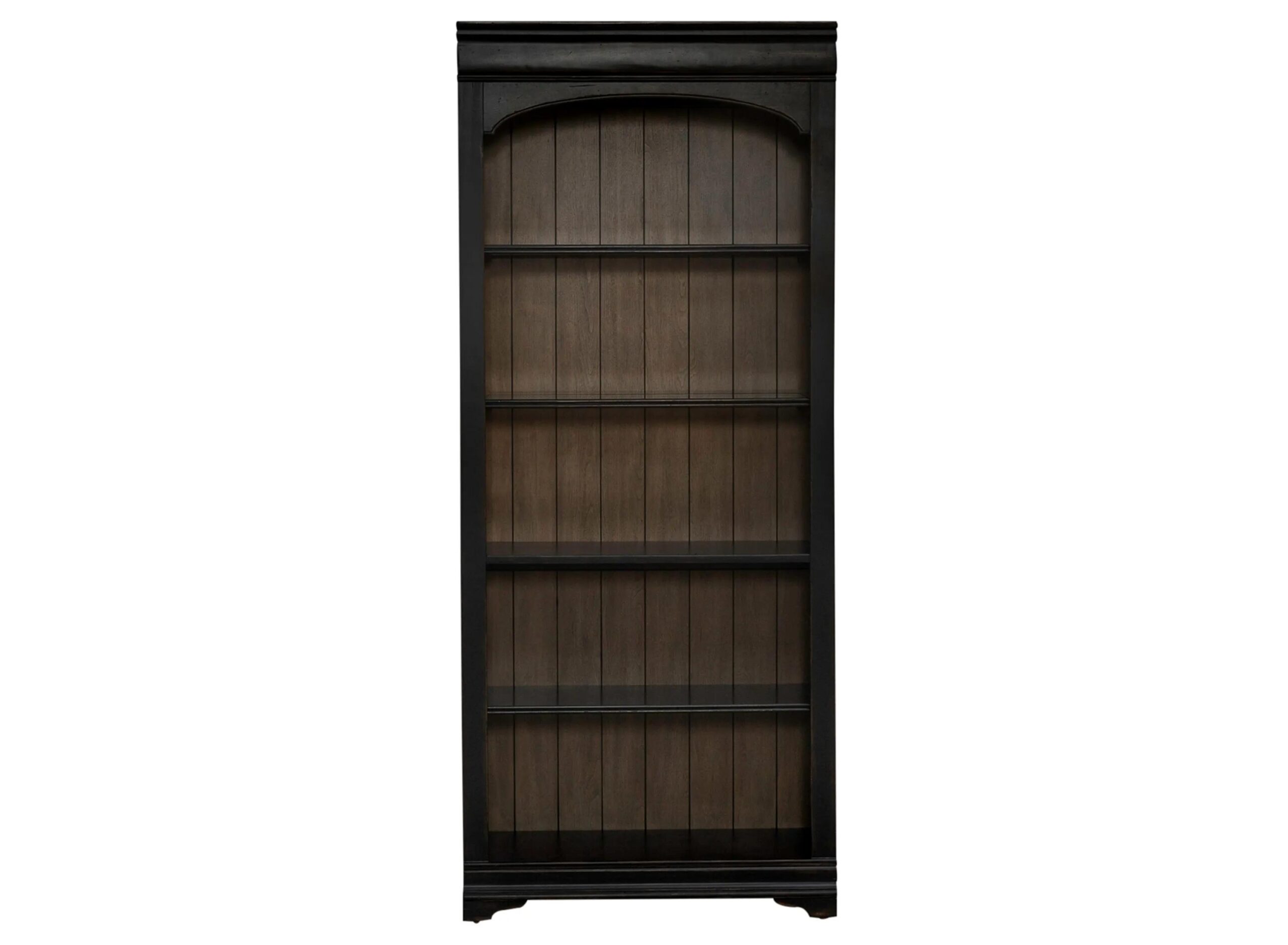 Creativity starts with the Meritage Bunching Bookcase. Meticulously crafted using Poplar solids with Birch and Maple veneers, this piece features an Aged Charcoal with rub thru and Caramel finish. Admire the intricate detailing of the heavy top crown and arched moldings, which lend a sense of gra