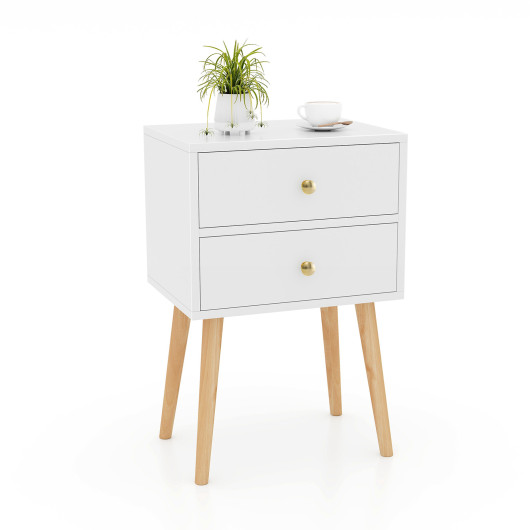 Mid Century Modern 2 Drawers Nightstand in Natural-White