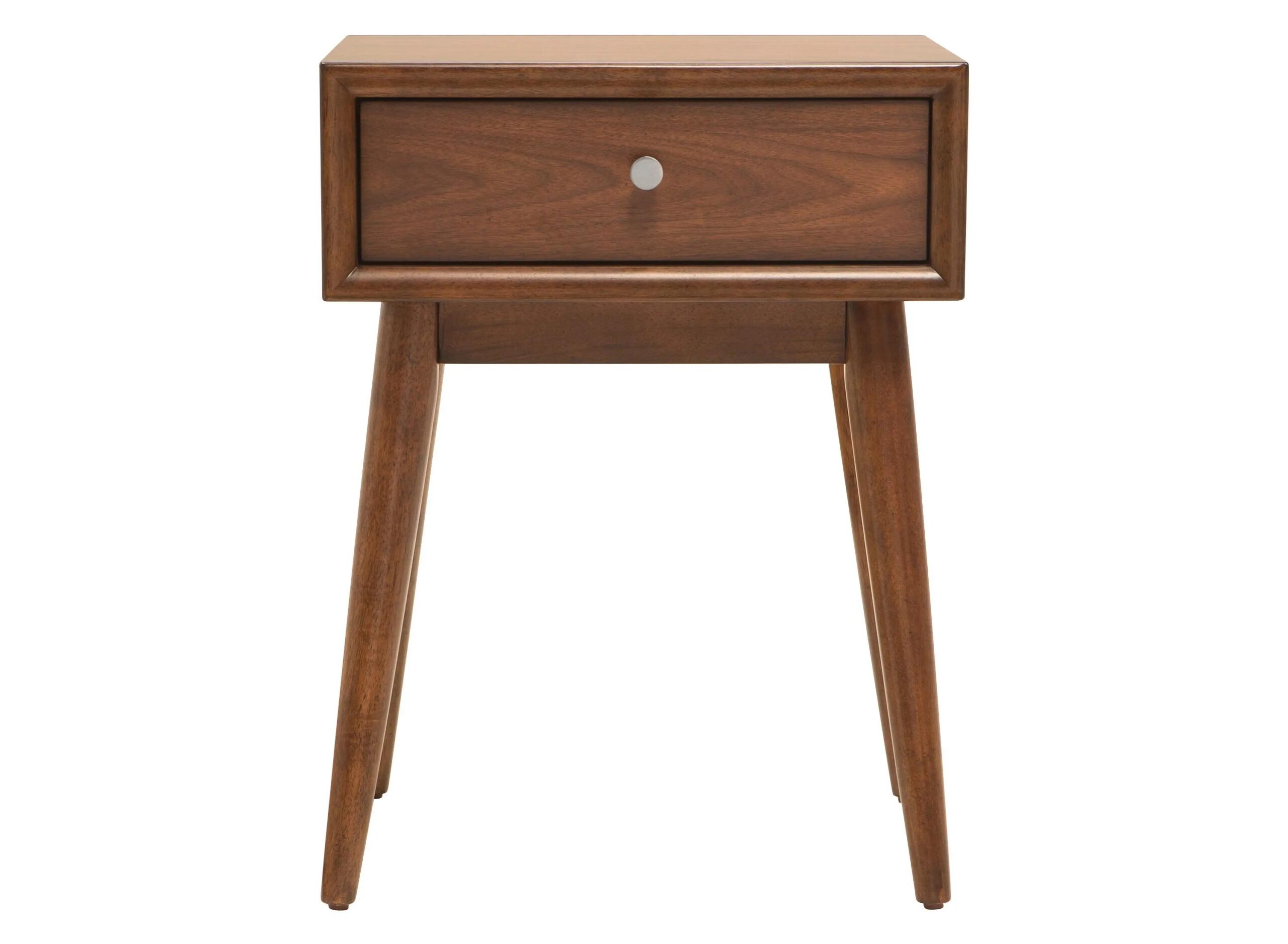 The clean, contemporary look of the Miranda end table adds a sleek, modern air to any decor. Beautiful walnut finish and simple design has a minimalist vibe that’s sure to add a sophisticated touch to your room.