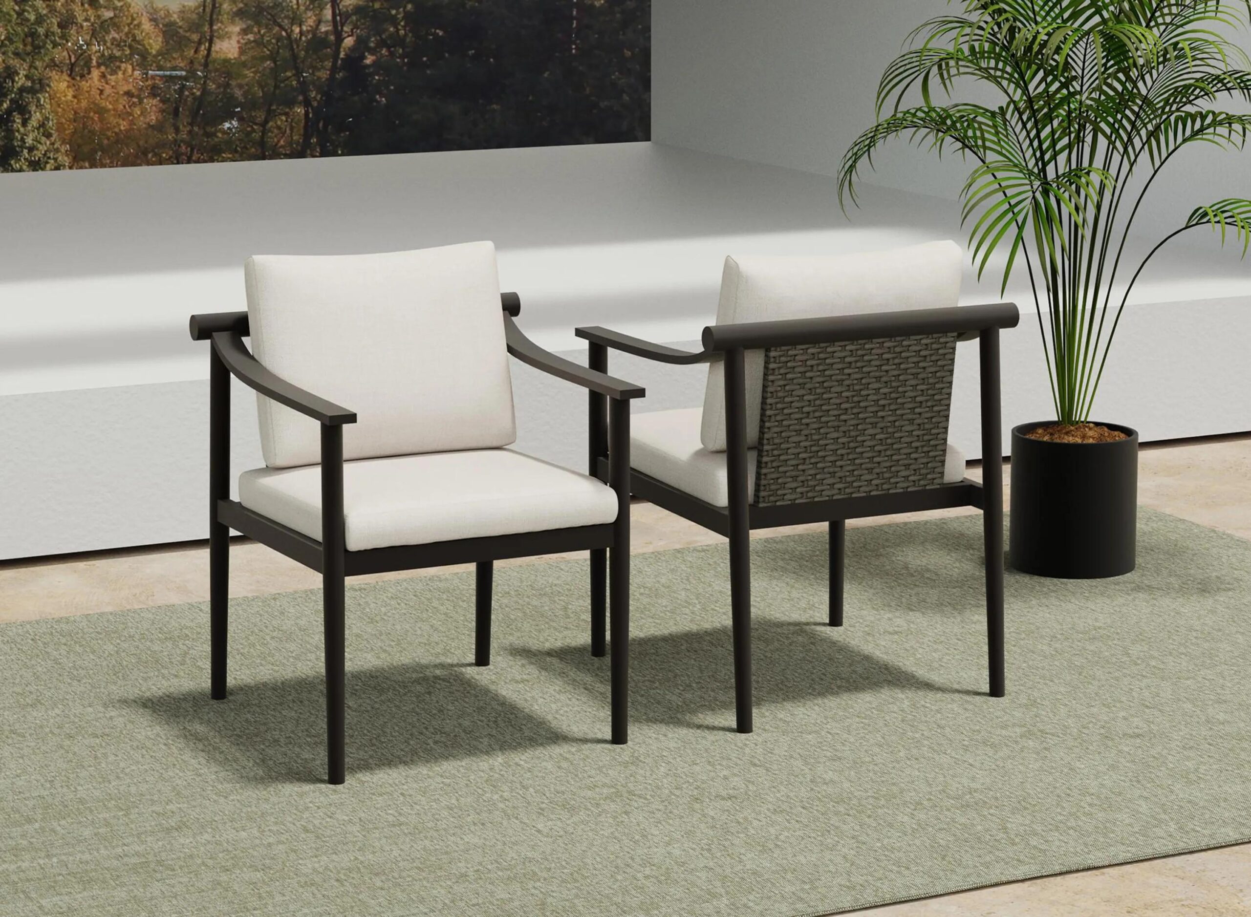 Moana Outdoor Patio Side Chairs- Set of 2 offer a durable and stylish seating solution for your outdoor space. Built with aluminum frames and a baked-on powder coat finish, these chairs provide excellent resistance to scratches and the elements, ensuring long-lasting use.
