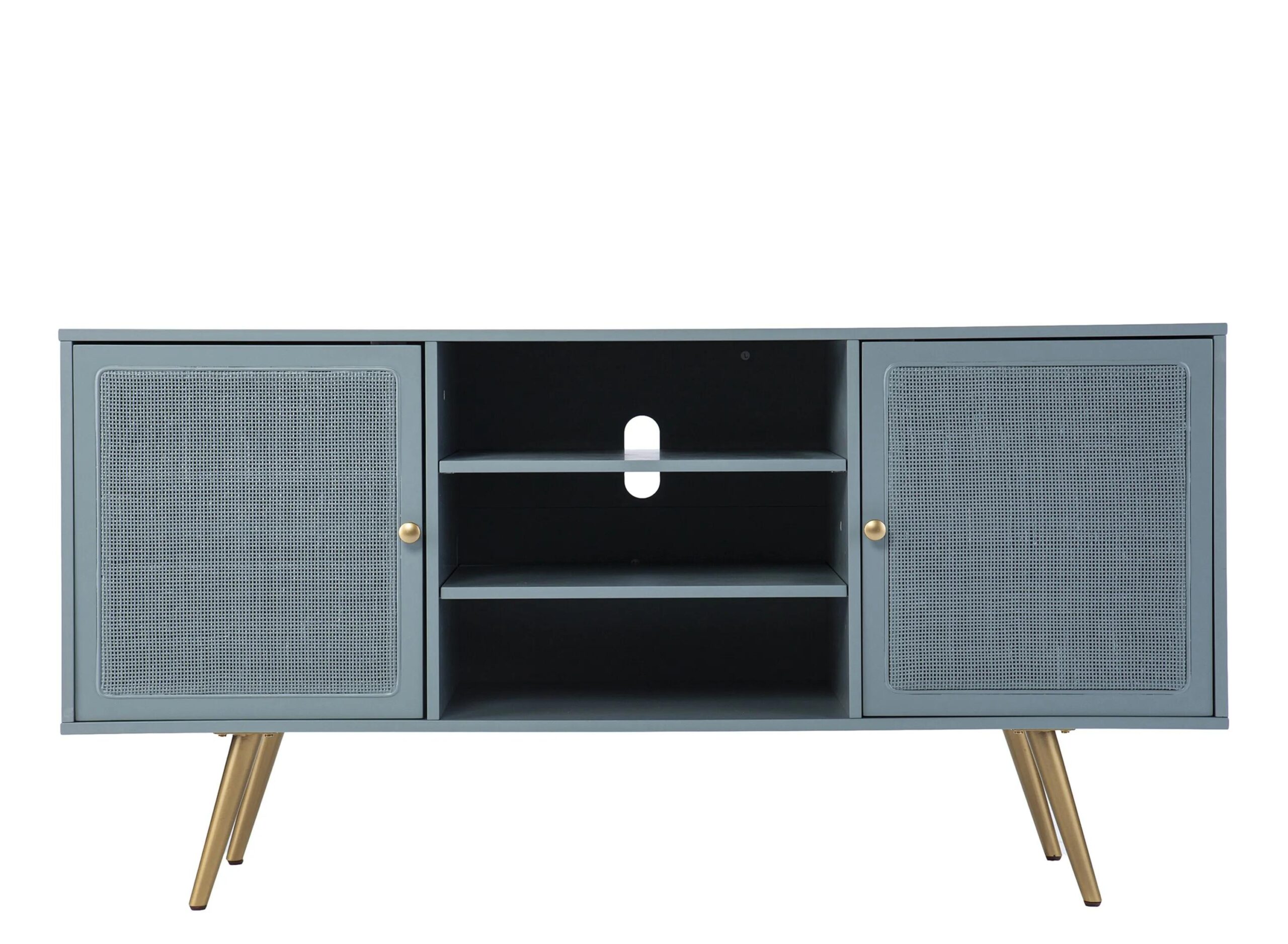 Bring home a retro feel with this Moira Tv/Media Stand. Spacious cabinets organize everything from movies and books to toys and pet gear, while natural rattan accents add unique texture to your space.