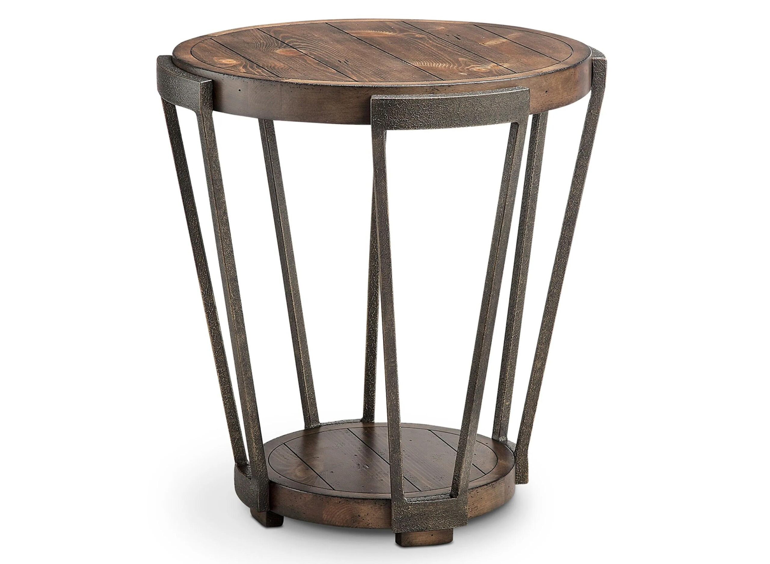 Simple elegance and grace are the defining elements of Monarch Yukon Round End Table. Executed in rich Cherry and Walnut veneers and hardwood solids, this regency inspired collection features inwardly curved saber legs that graciously splay outward and support an added shelf for lower storage, at