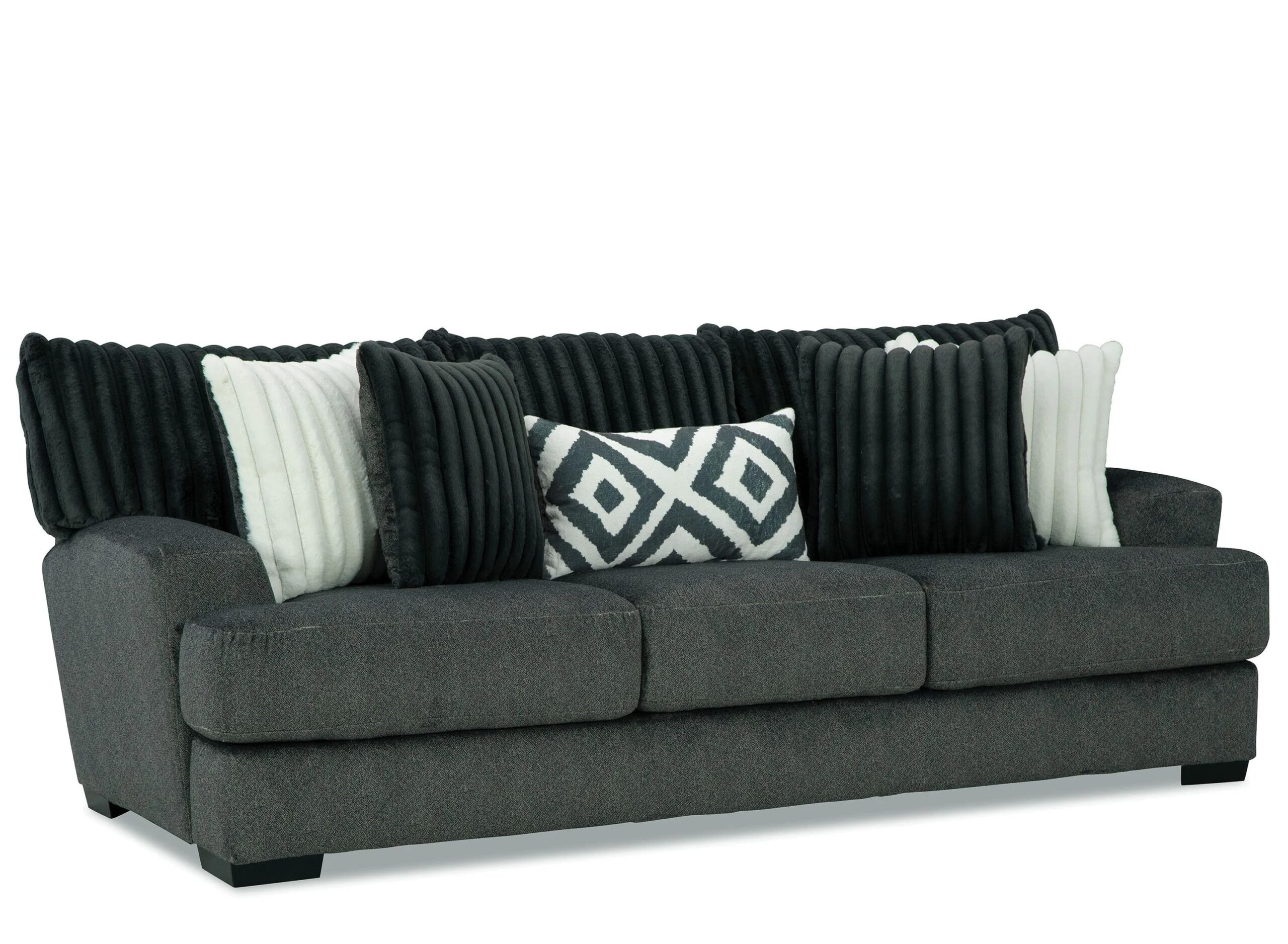 The Mondo Sofa features the ultimate in style, comfort, and value. Covered in brand new plush, ultra-soft fabrics, you’ll be amazed at the touch and feel of these new luxurious materials. Thick seat cushions and beautifully coordinating accent pillows creates a gorgeous space in your home t