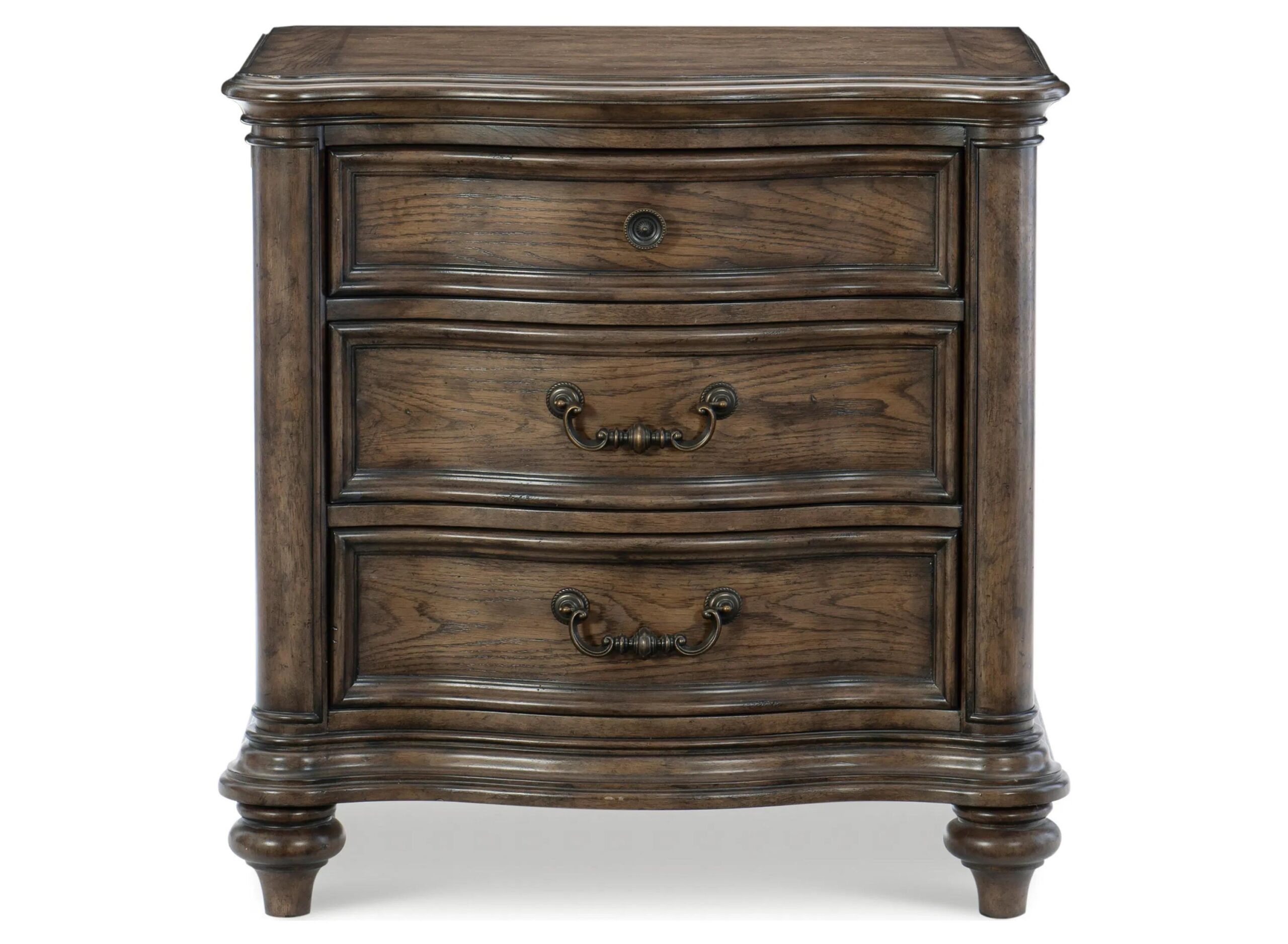 The elegant profile of the Moorewood Park nightstand is comprised of classic elements that have been combined to create the perfect addition to your home’s traditional dcor. The formal styling of the nightstand includes classic elements such routed edges and decorative wood grain.