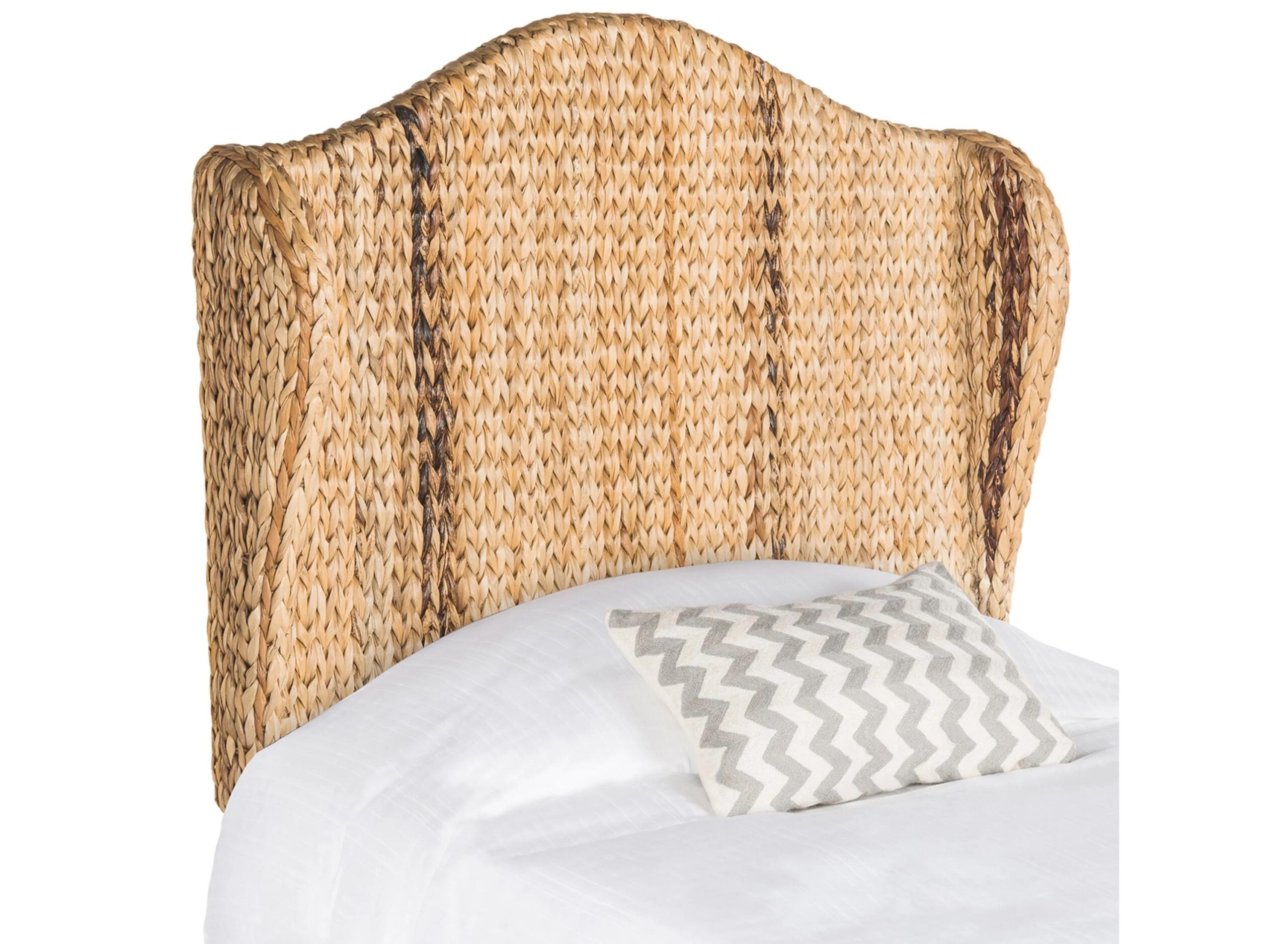 The ultimate in sustainable design, this gently arched Nadine Natural Twin Mounted Headboard is artfully woven of banana leaf fibers replete with rich natural tones. Its classic camelback design, side wings and braided texture make any bedroom a naturally indulgent oasis.