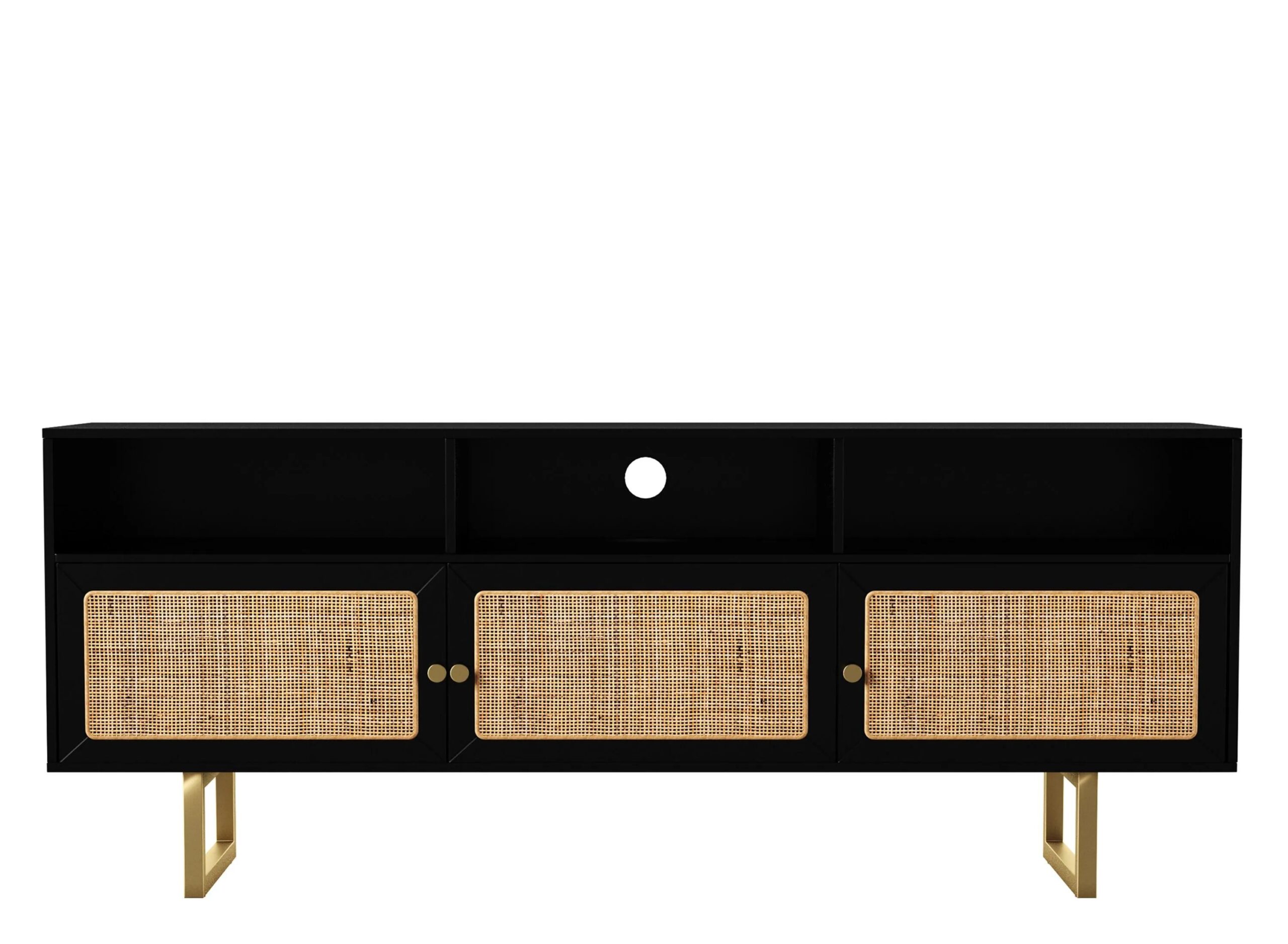Give your living space a modern refresh with this Natalia Tv/Media Stand. Three spacious cabinets tuck away movies and toys, while rattan accents add unique texture to your space. A cord control opening and three media shelves keep electronics tidy and organized, letting you relax with your favor