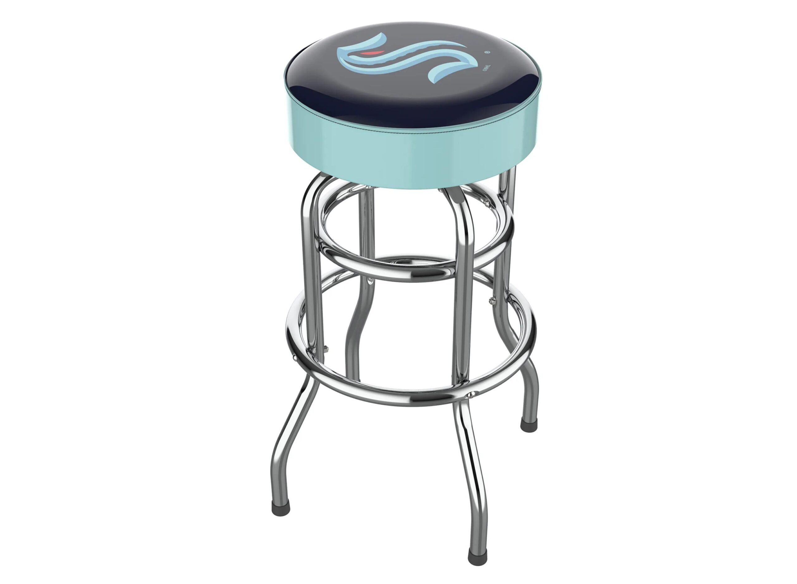 NHL Backless Swivel Bar Stool features a sturdy steel frame and 360 degrees swivel seats. The vinyl seat is easy to clean and includes your favorite team logo that is sure to never scratch off.