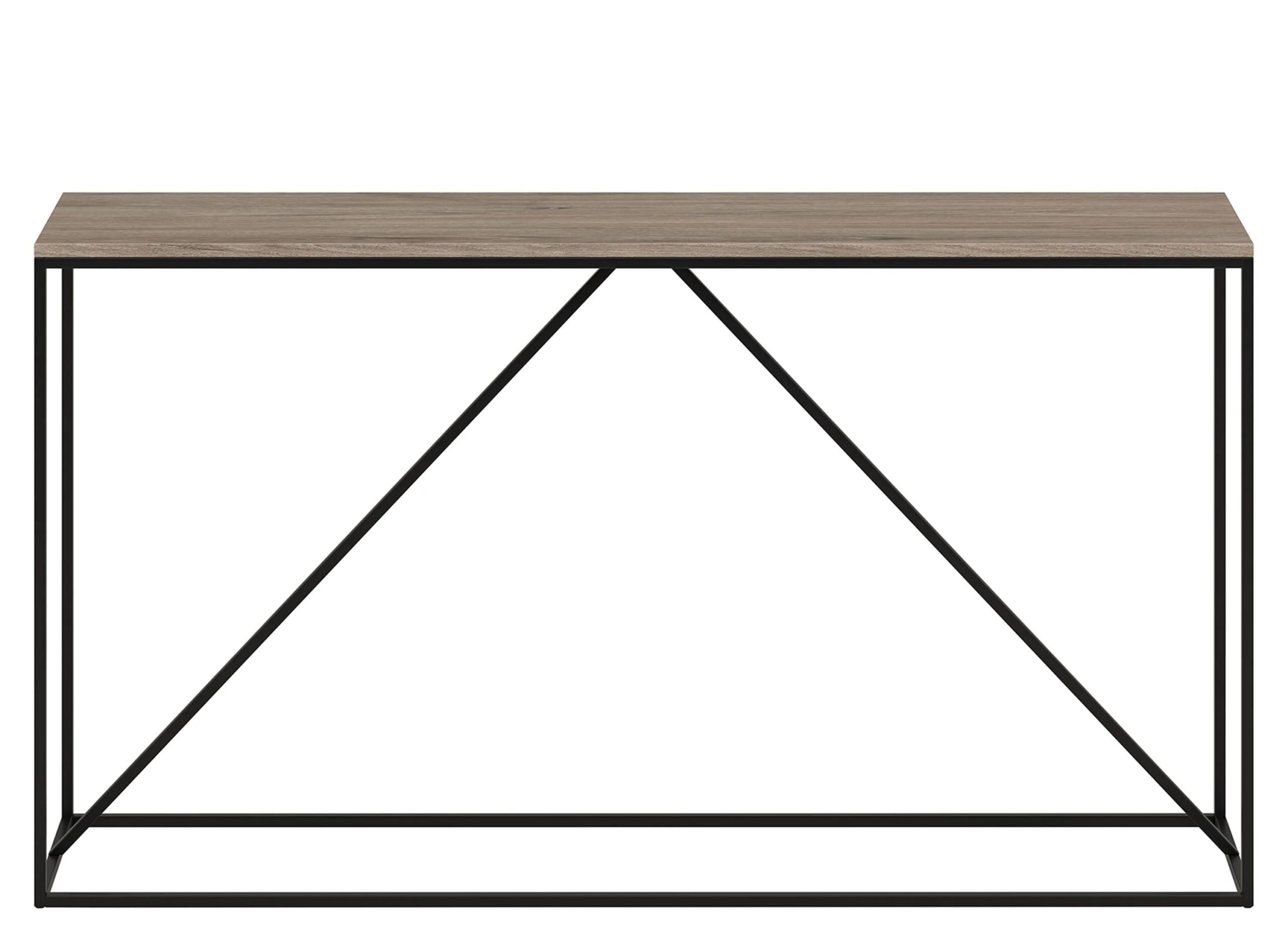 This Nia Console Table is built for utility and design, featuring an on-trend wood-look top with a 40 lb. weight capacity. It’s thoroughly modern blackened bronze frame features a diagonal center support that adds stability and visual interest.