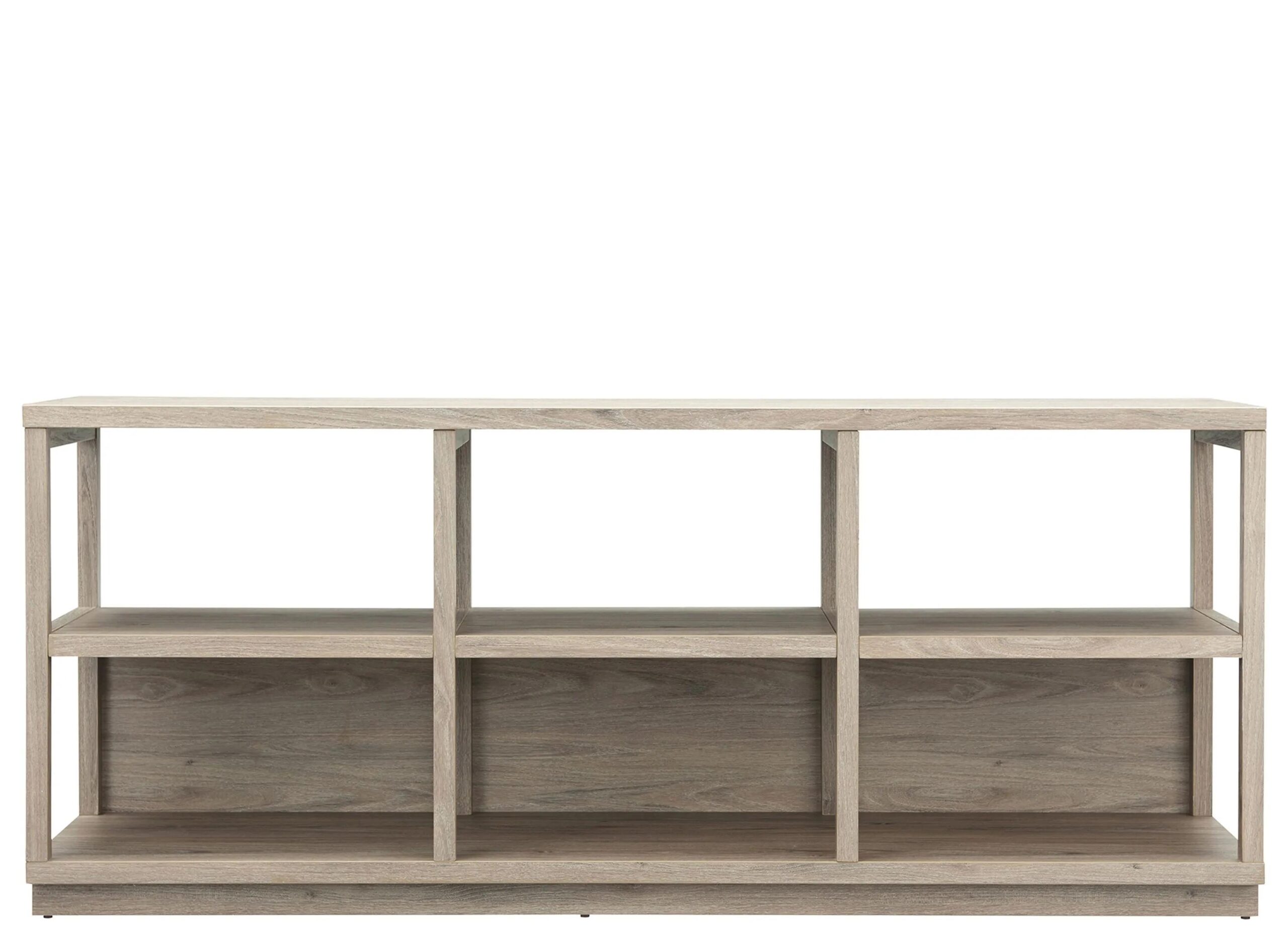 Striking in its simplicity, this open plan Nicole 68″ TV stand emphasizes clean lines and straightforward design. This three-tiered entertainment solution features open-framed sides that create an airy exposed look, while the lower shelf’s finished back anchors the piece and creates a