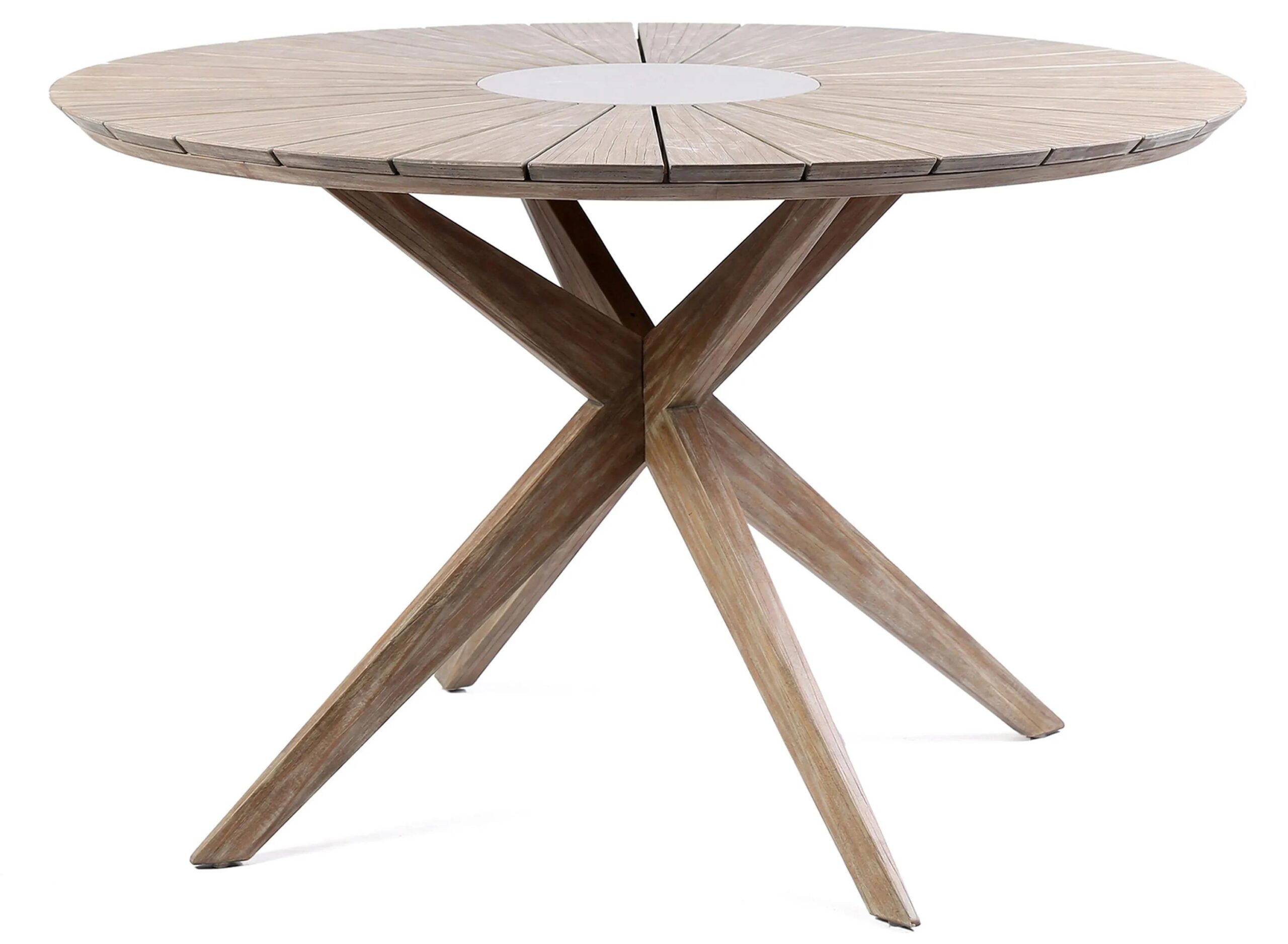 The Oasis outdoor dining table is a masterpiece, ideal for the contemporary household patio. Stylish and durable, this dining table features a super stone center and eucalyptus wood. This combination of materials creates a look of practical sturdiness without compromising on the contemporary aest