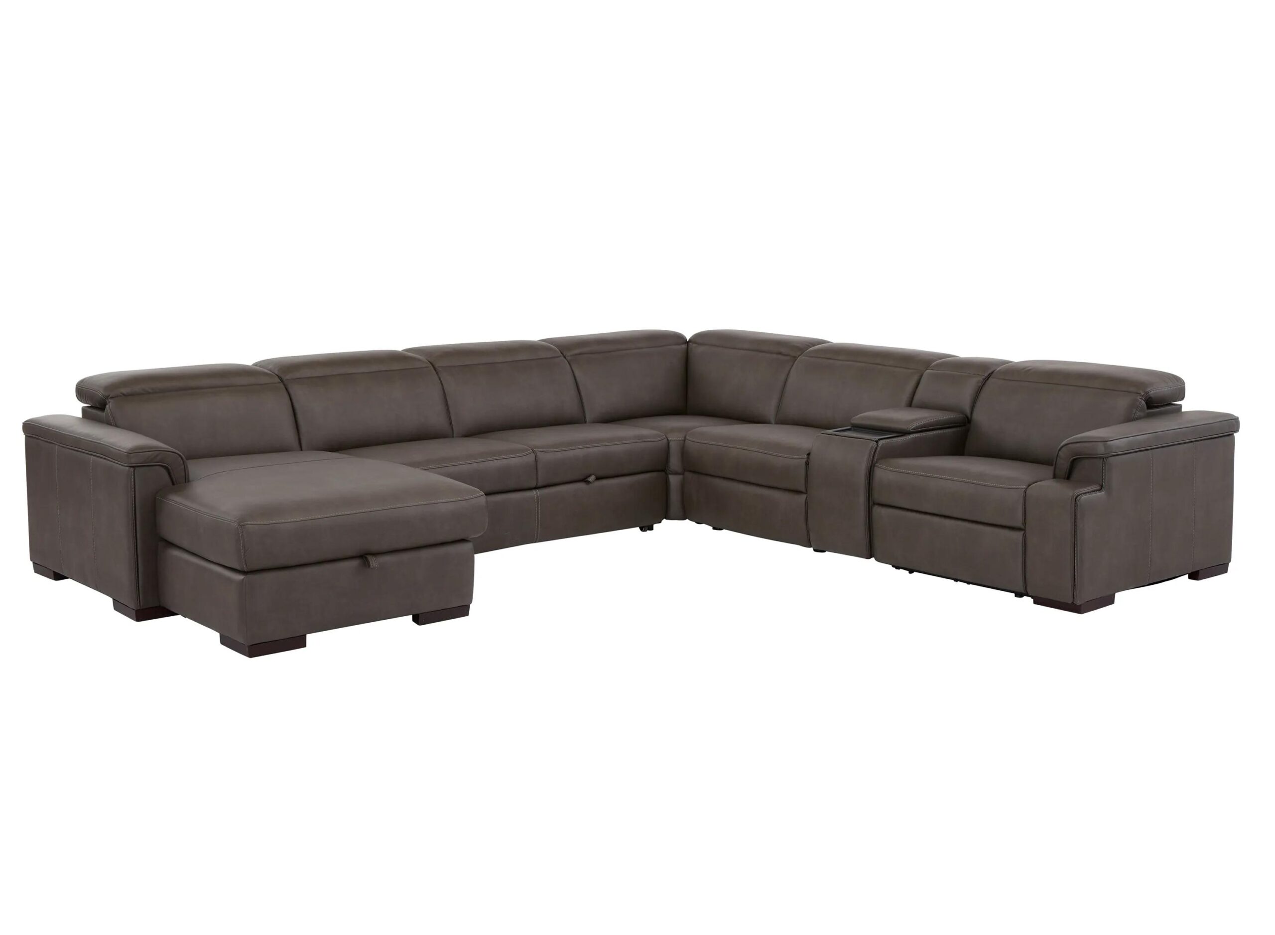 Sleek and subtly futuristic, the Orion 6-pc. sectional delivers next-level functionality to keep you comfortable, connected, and entertained. Along with dual power functions, faux leather performance fabric, and a bold, modern silhouette, on-point extras take this media sectional over the top.