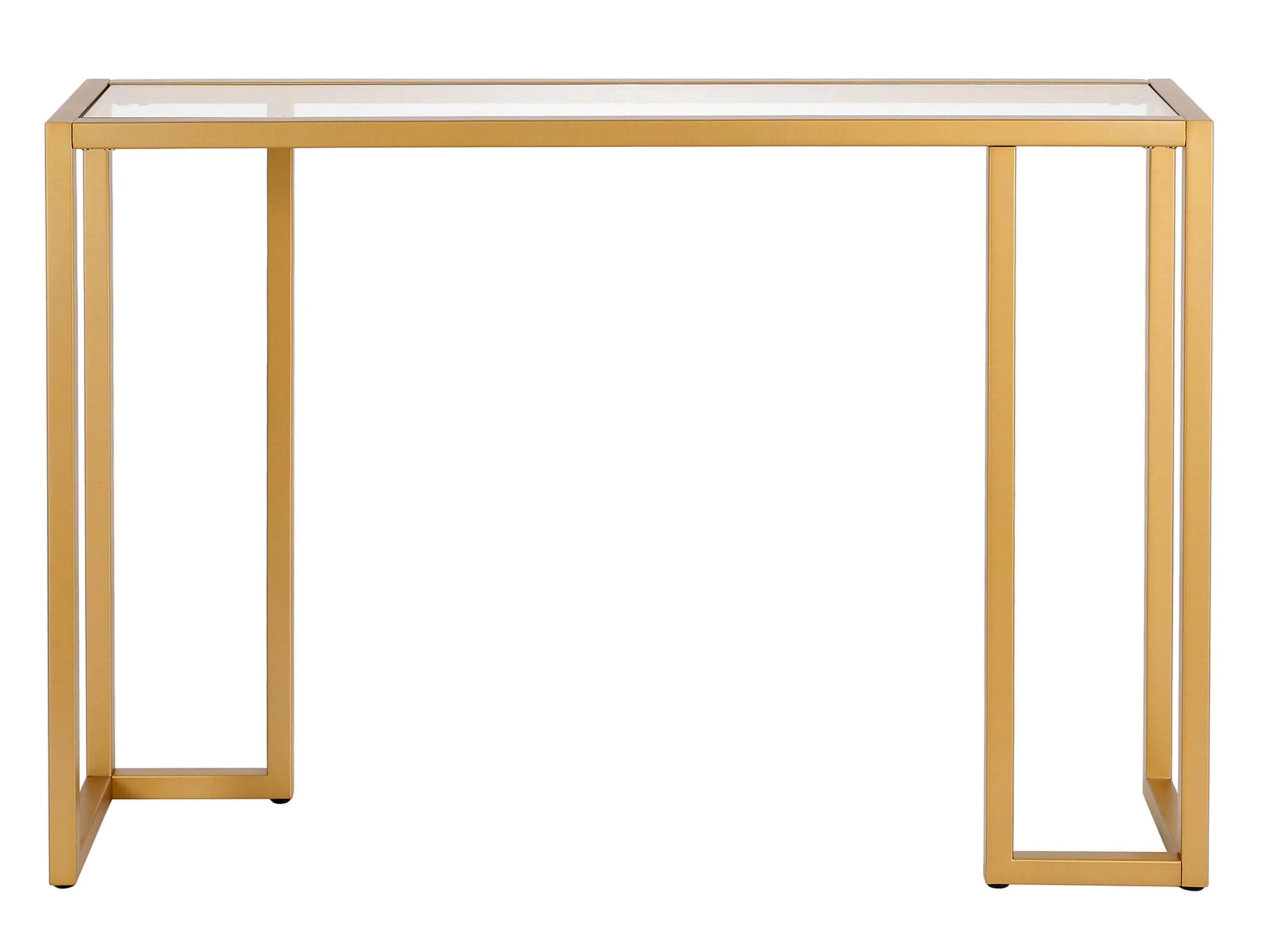 Diagonal corners and clean contemporay lines make this Oscar console table one of a kind. Crafted in premium metal and finished in a classic brass, this table lends itself as the perfect compliment to your modern, industrial-inspired space.