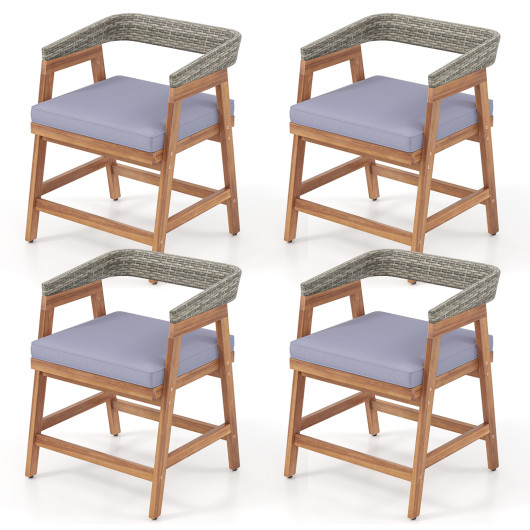 Outdoor Acacia Wood Patio Wicker Dining Chairs Set of 4