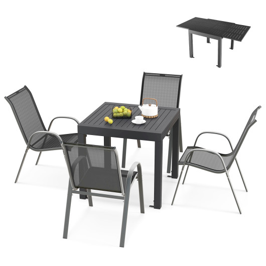 Outdoor Dining Table Set with Extendable Aluminum Table and 4