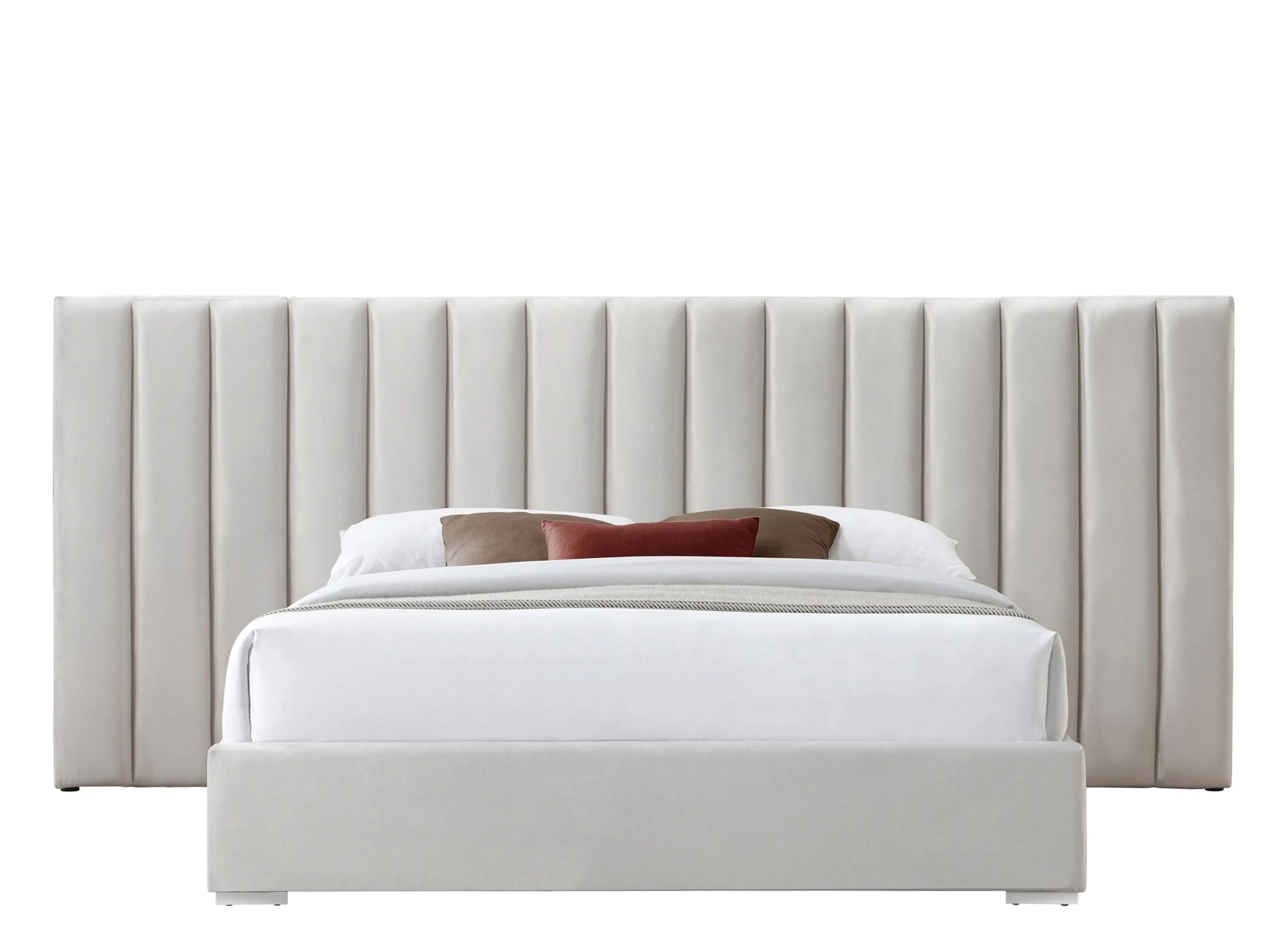 Pablo Bed is destined to become the centerpiece of your bedroom sanctuary makeover with its elegantly eye-catching design and soft cream velvet upholstery. The bed rests on sturdy metal feet with a gleaming chrome finish, helping to ensure its strength and resilience for long-term use.