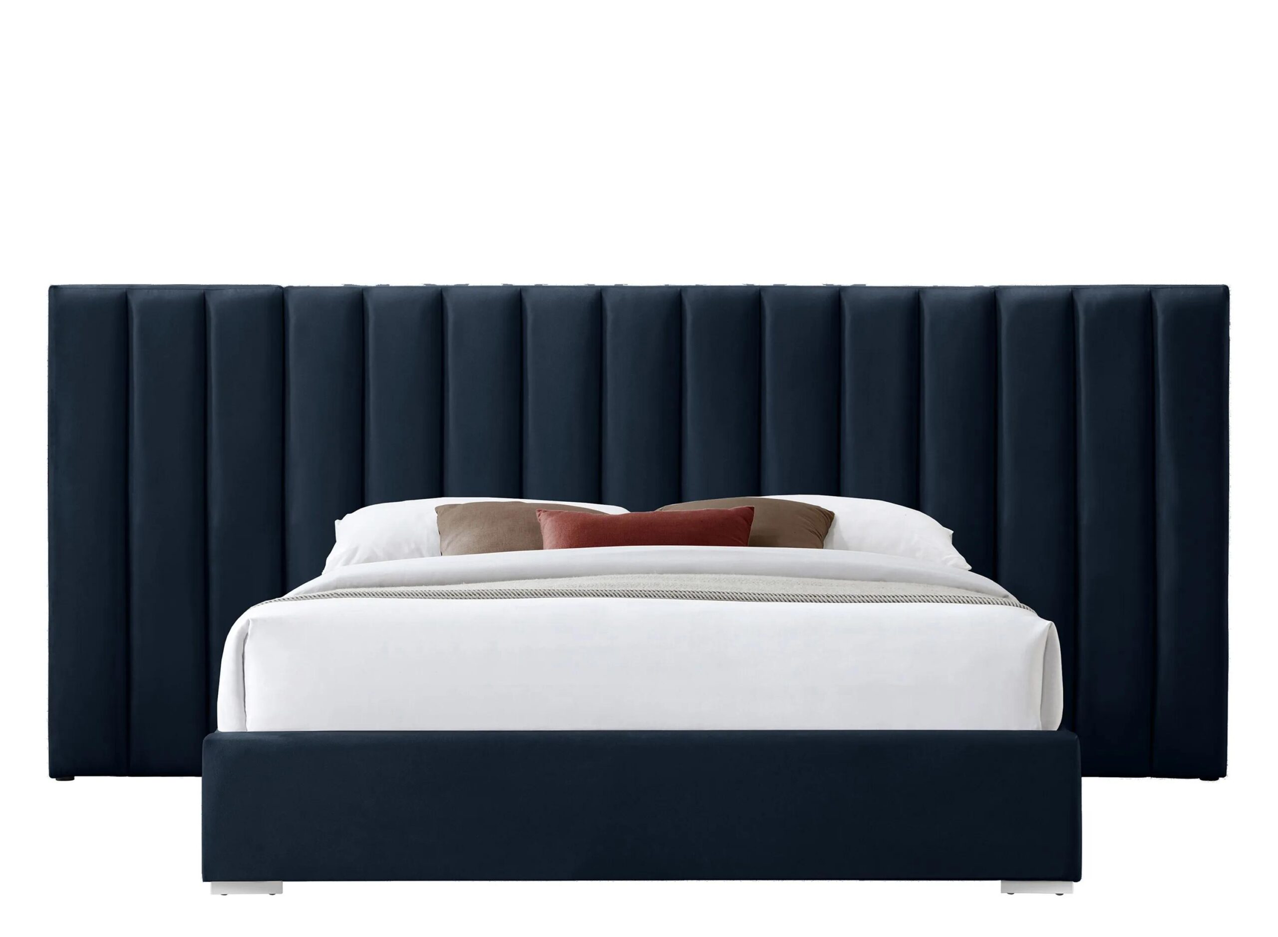 Pablo bed is destined to become the centerpiece of your bedroom sanctuary makeover with its elegantly eye-catching design and soft navy velvet upholstery. The bed rests on sturdy metal feet with a gleaming chrome finish, helping to ensure its strength and resilience for long-term use.