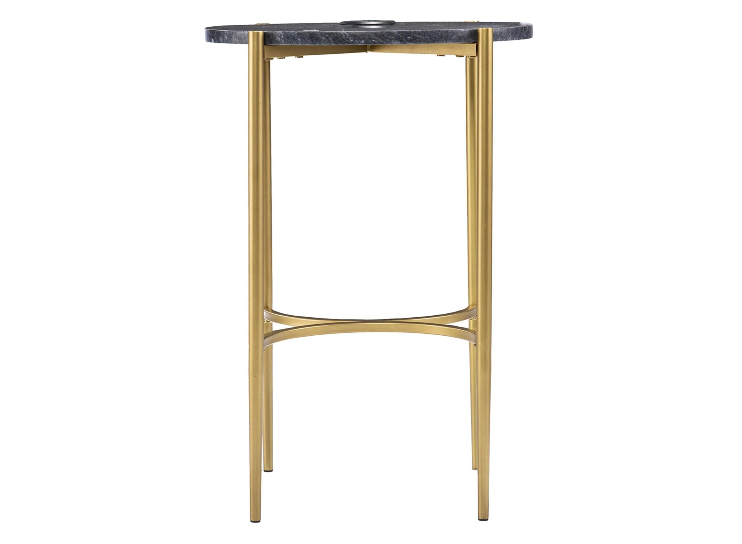 Style and function combine in this Padstow Side Table W/Wireless Charging. The black marble top contrasts with sleek gold legs, crafting a modern feel. A wireless charging pad conveniently charges Qi-enabled devices,while a standard USB port is available for your other electronics.
