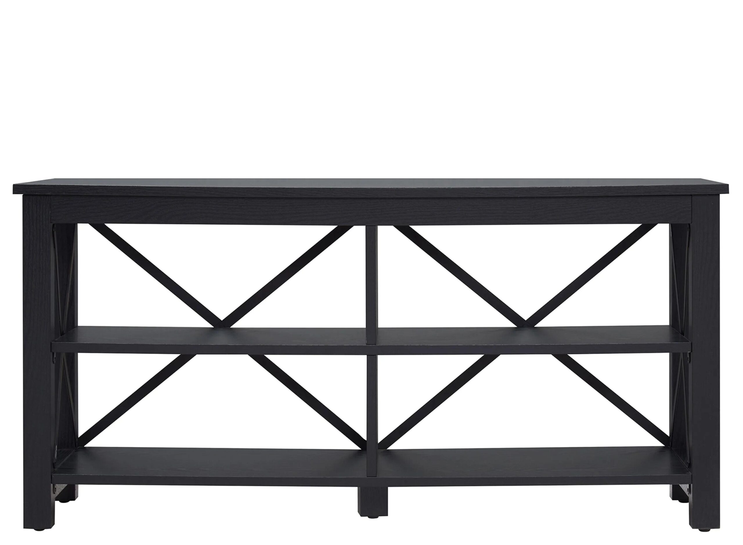 Strong geometric lines set this modern farmhouse-inspired Paisley TV Stand apart. Its X-shaped black metal accents offset the rich wood tone, creating a warm neutral color palette that will blend seamlessly into any design scheme.