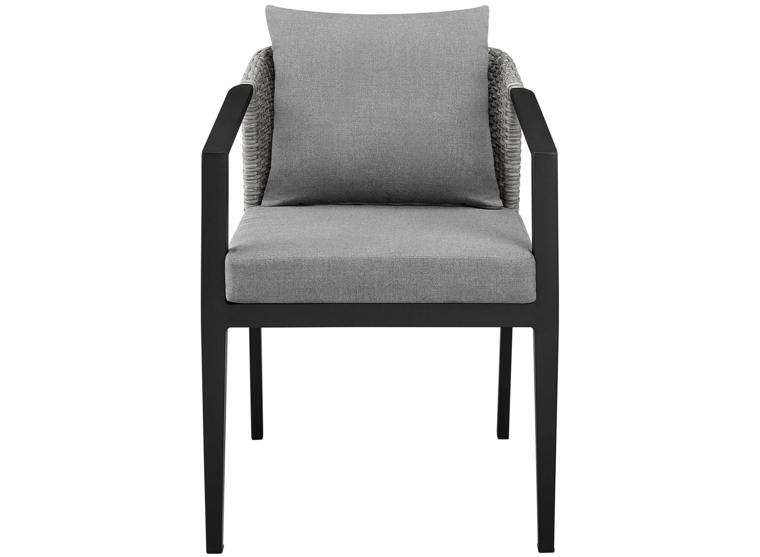 Welcome your guest with cozy comfort and style with our Palma outdoor dining chairs – set of 2 from Armen Living. Featuring an intricately hand-woven rattan back wrapped around a sleek aluminum frame, this outdoor chair with cushions vouches for an elegant and modern design.
