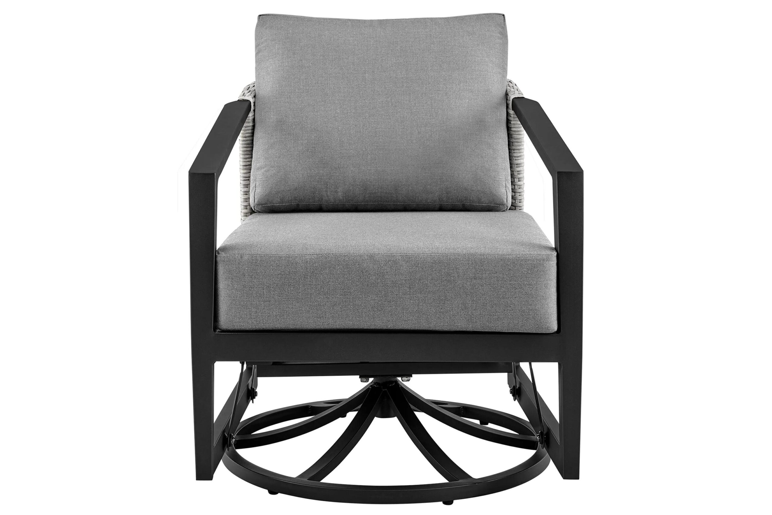 Enjoy your patio or any outdoor space to the fullest with the Palma Outdoor Swivel Lounge Chair from Armen Living. The intricately hand-woven rattan back serves as a charming and elegant detail while providing ergonomic support to keep you comfortable for extended periods.