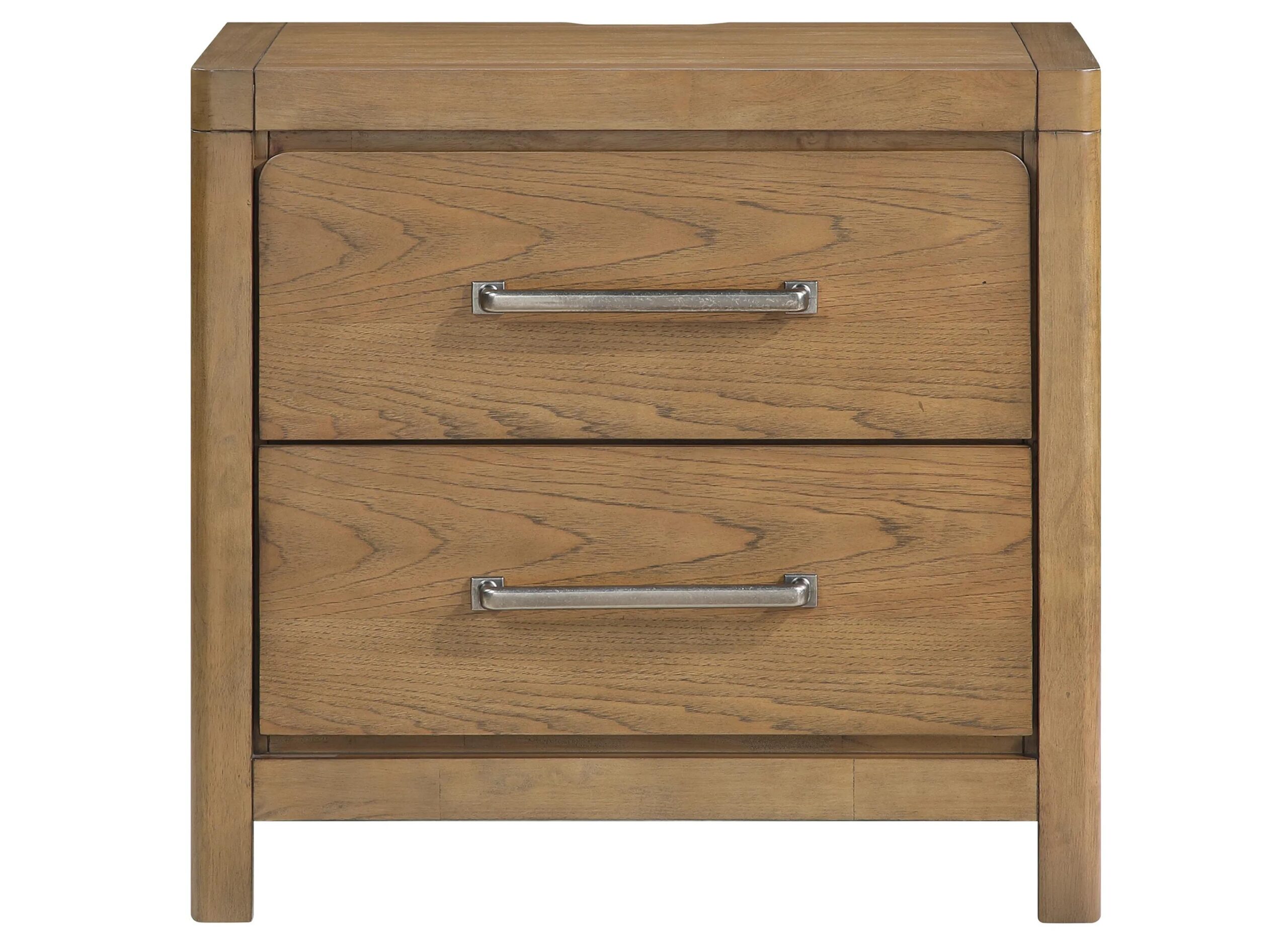 Elevate your bedside experience with this modern and highly functional Paola Nightstand. Crafted from a durable blend of hickory veneer, wood, and engineered wood, and finished in a warm light brown, this piece offers robust stability and a timeless aesthetic.