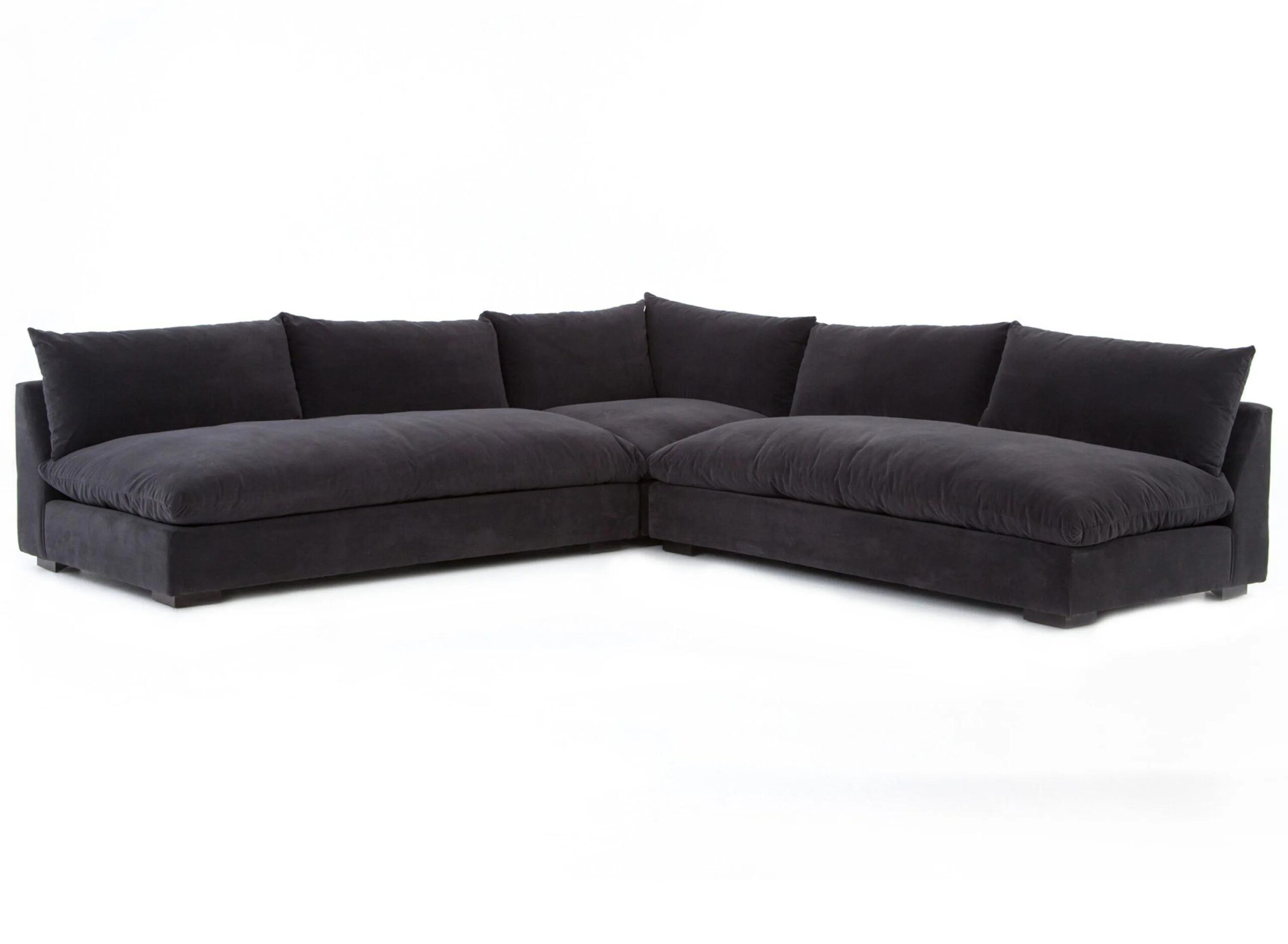 The Pathfinder 3-pc. sectional sofa welcomes you to the modern lounging essential. The simplified sectional is upholstered in soft, durable, stain-resistant crypton fabric in an invitingly dark charcoal.