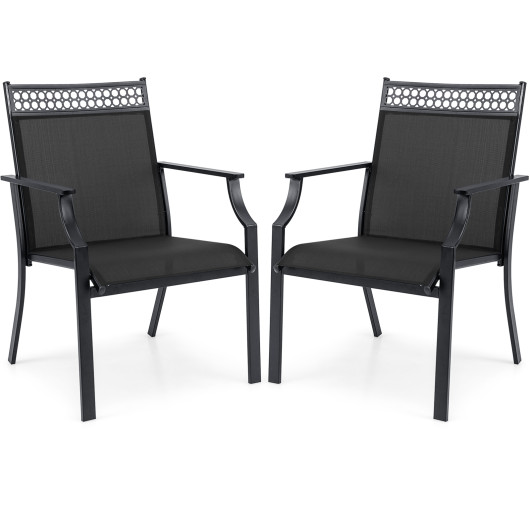 Patio Chairs Set of 2 with All Weather Breathable Fabric-Black