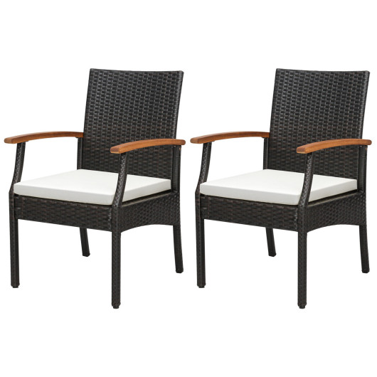 Patio Wicker Chair Set of 2 with Soft Zippered Cushion