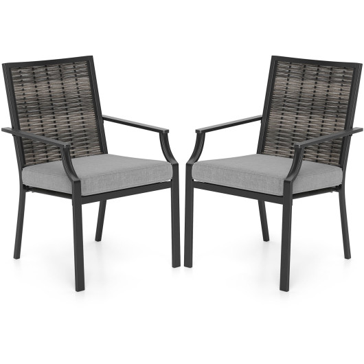 Patio Wicker Chairs Set of 2 Stackable Rattan Armchairs with