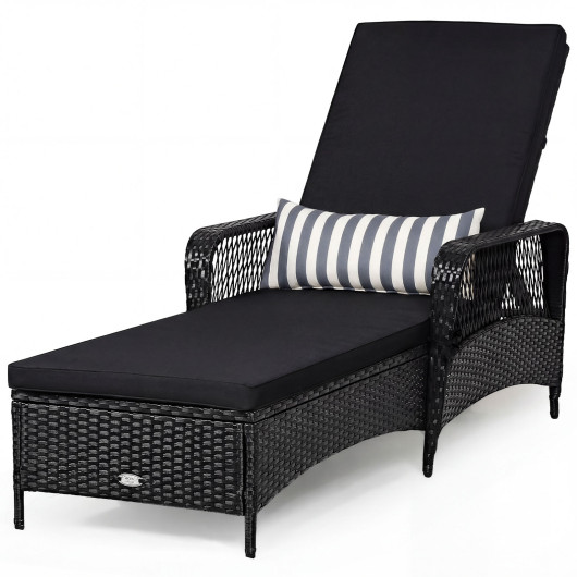 Patio Wicker Chaise Lounge Chair with Pillow and Adjustable Backrest