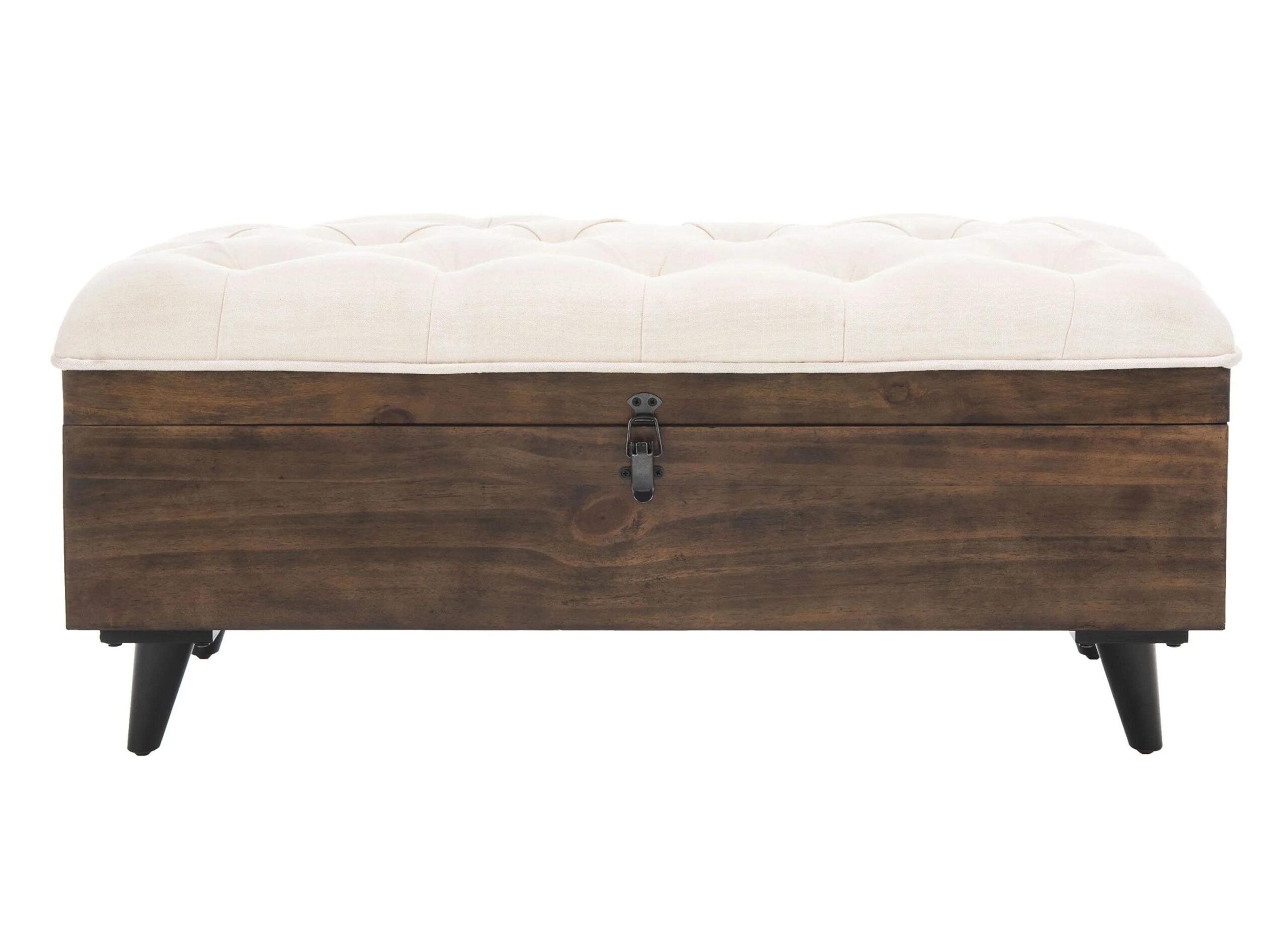 This modern Paula Tufted Cocktail Ottoman adds stylish seating and generous storage to any living room. Crafted with a classic dark oak finish, its generous light beige linen upholstery features tufted details.
