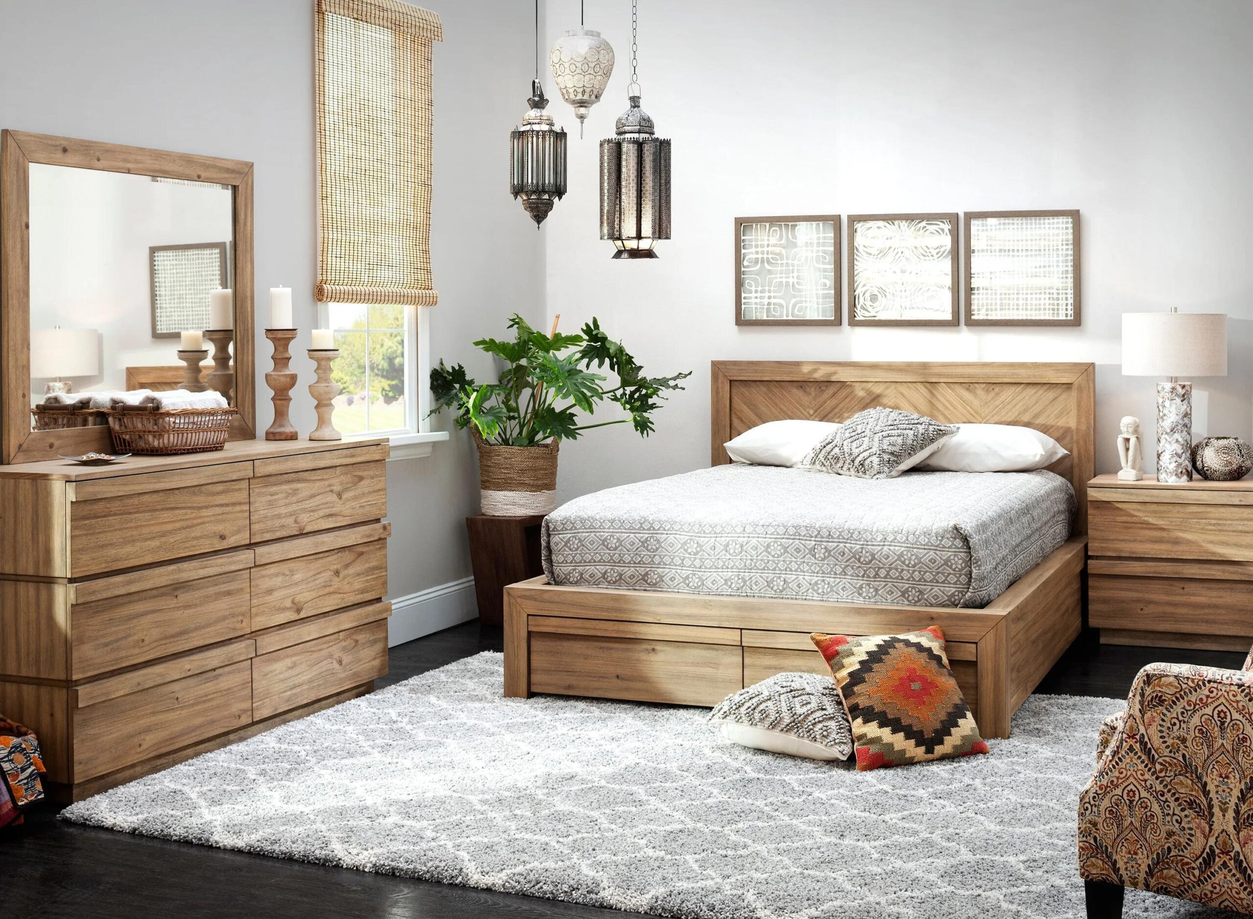 Effortless, clean style is exactly why we adore the Playa 4-pc. king bedroom set. This group’s relaxed vibe creates warm feelings of leisure in your space. The beautiful wood grain of the acacia veneers give off a natural, laid-back feel.