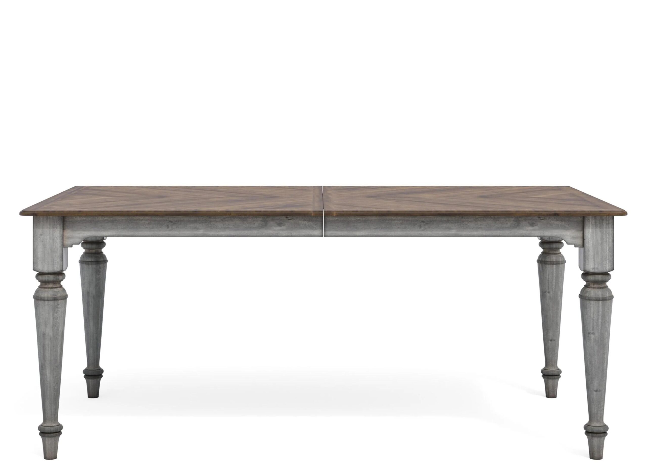 Dine and entertain in charming vintage style with the Plymouth Dining Table, featuring intricately turned legs for an appealing look. A distressed graywash finish contrasted by a medium brown top adds cottage-inspired character.