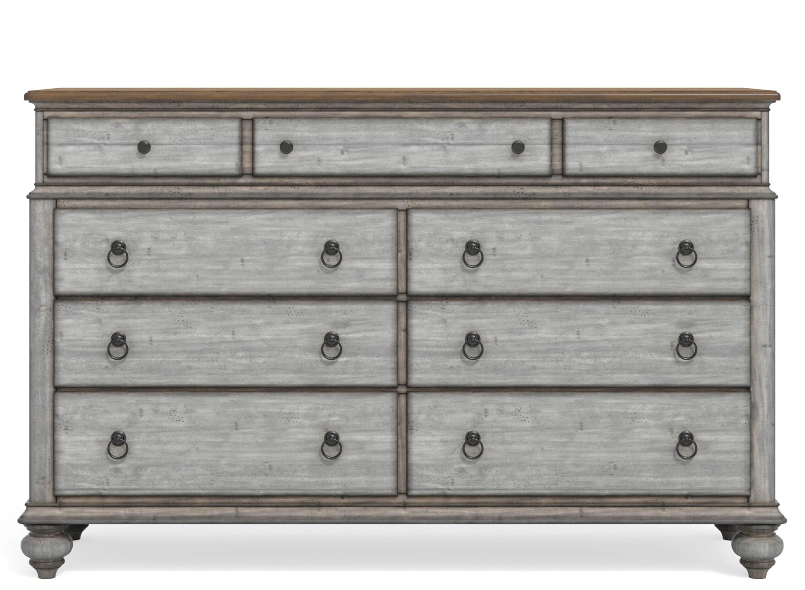 This cottage-inspired Plymouth Dresser supports your every storage need. Ample storage is provided with nine spacious, easy-to-open drawers accented by contrasting gunmetal pulls. Felt-lined top drawers and cedar-lined bottom drawers protect delicate items and clothing from damage and pests, whil
