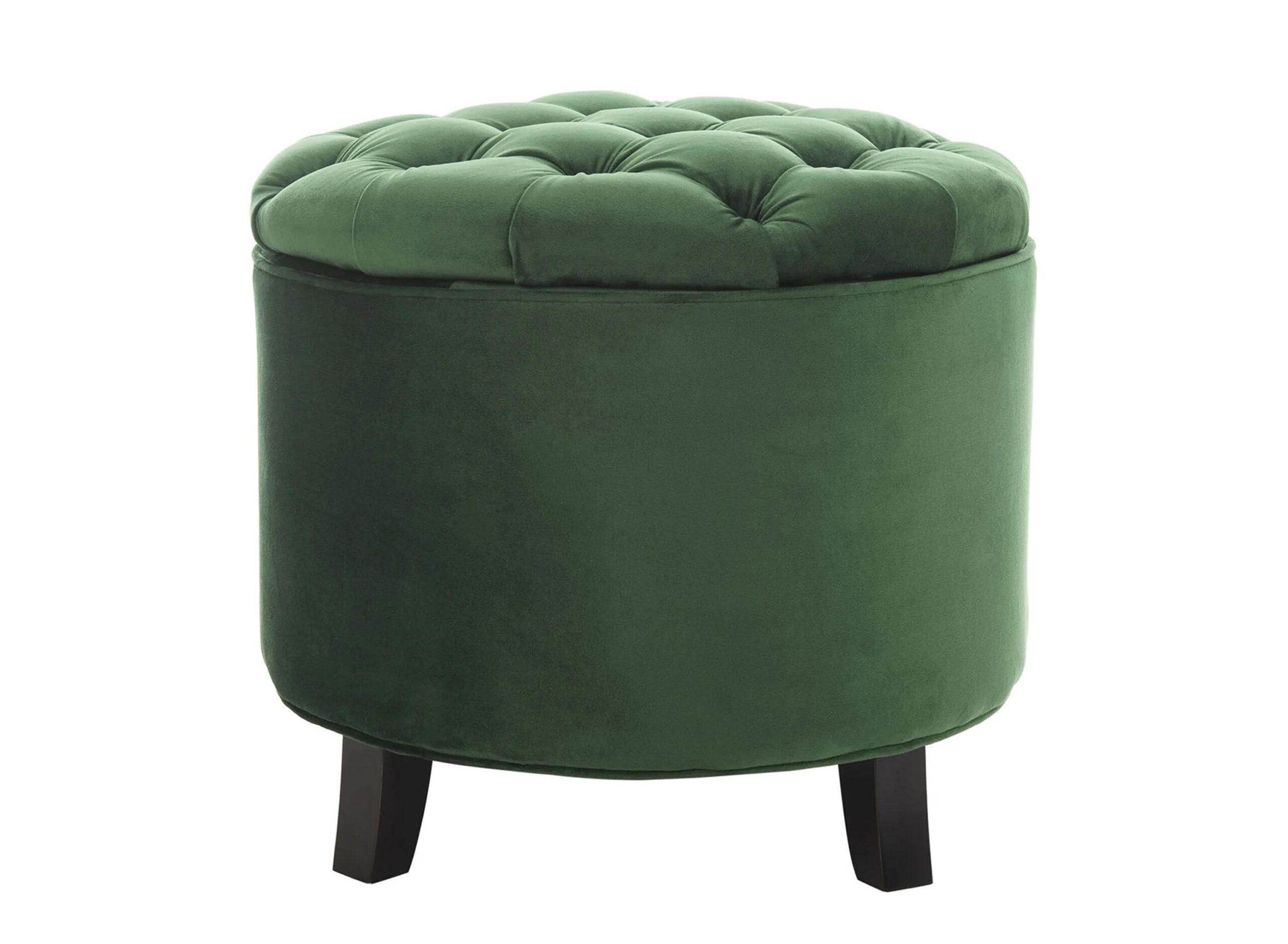 The fashion smart storage accessory, this Ponzi Tuffted Ottoman is ideal for any decor with its button tufted top and oak legs in an espresso finish. The emerald cotton velvet makes Amelia ultra comfortable and effortlessly chic.
