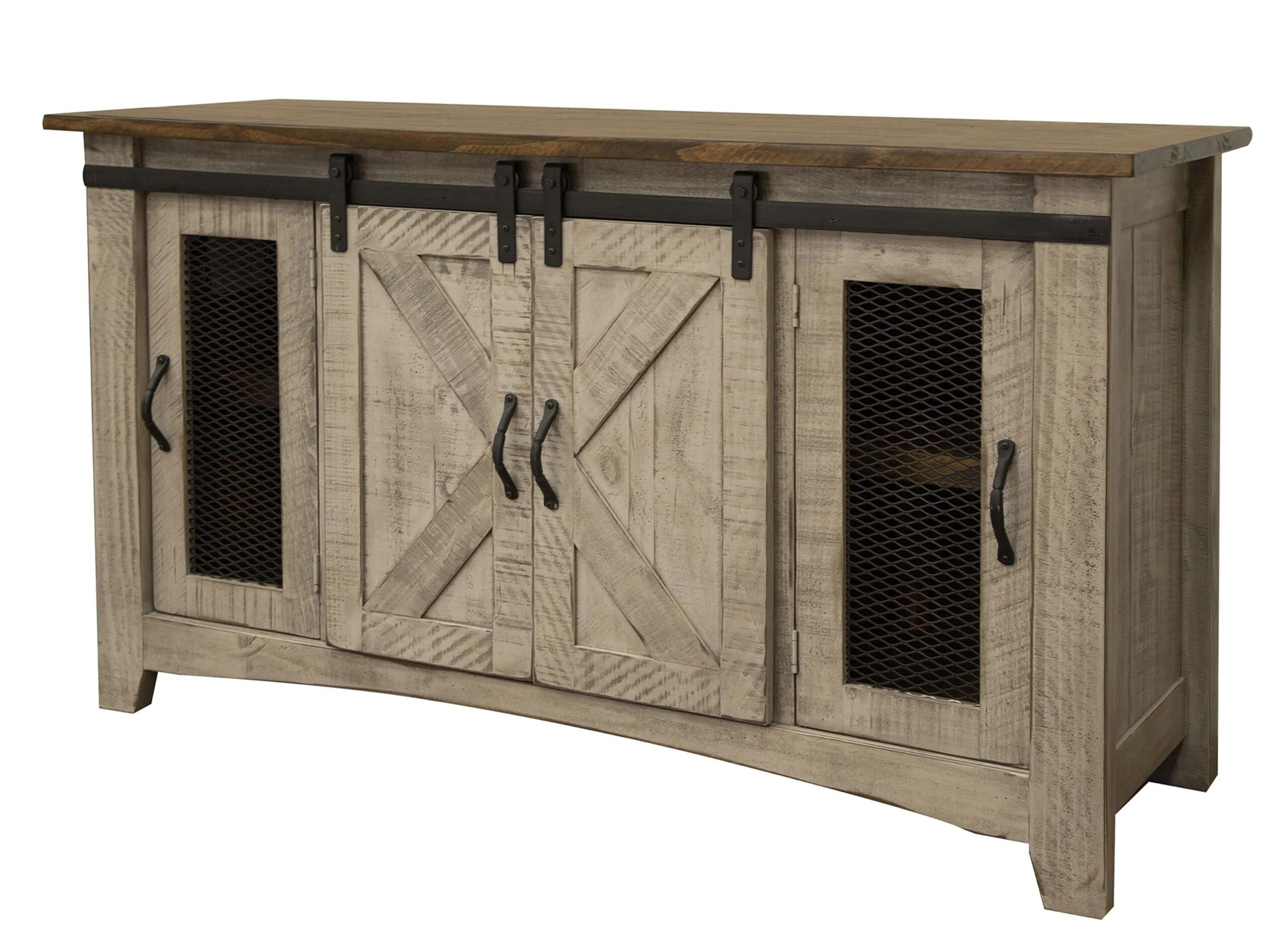 Updated casual farmhouse best describes this beautiful Pueblo 60″ TV stand. With it’s rustic yet casual appeal, this solid wood console mixes old with new. Using the time honored tradition of mortise and tenon construction, with premium full extension metal ball-bearing drawer glides