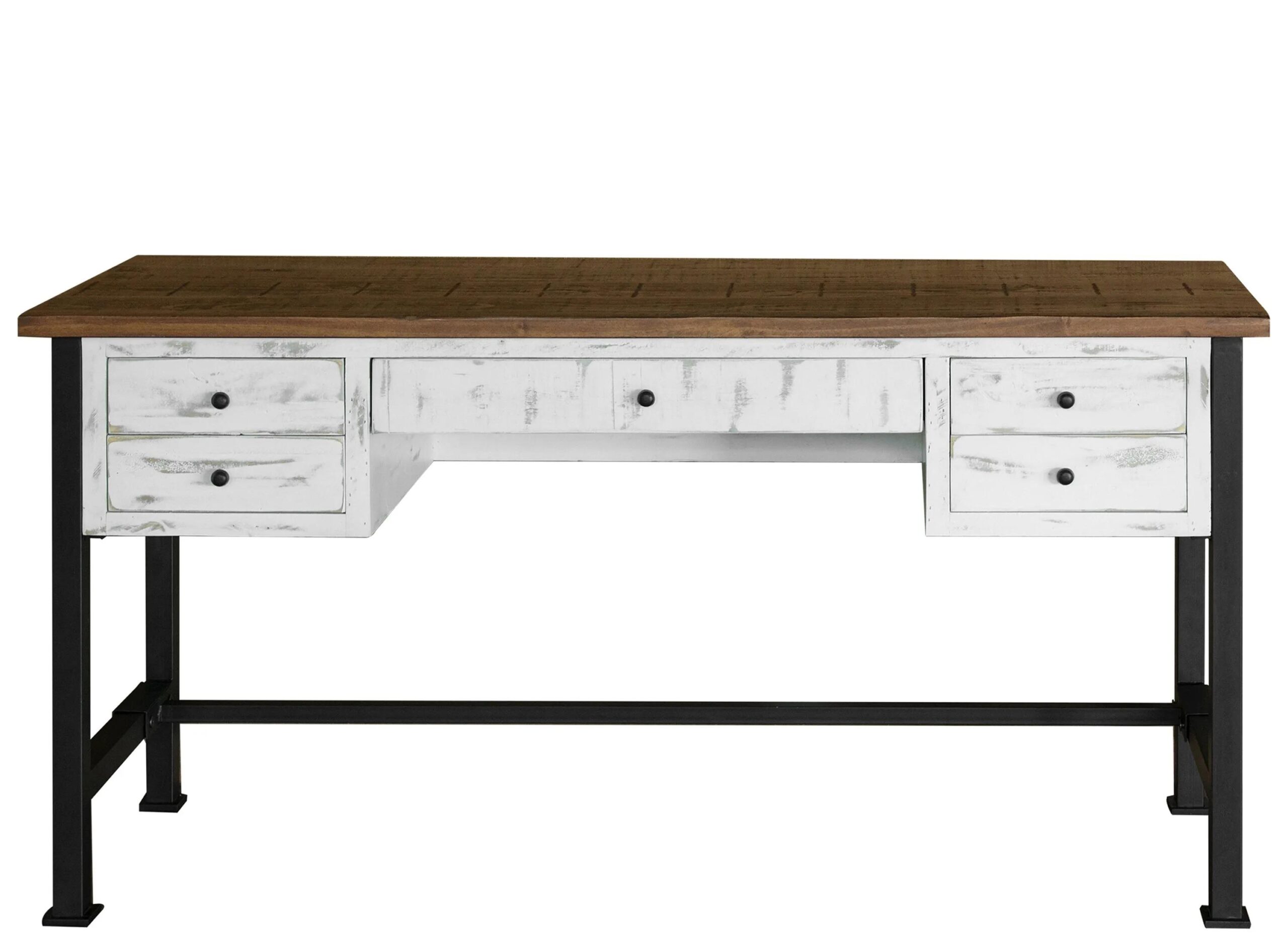 This beautifully constructed Pueblo desk with iron legs has been built using time honored traditions of old world craftsmanship. Made with solid hardwood with hand forged metal iron legs, and full extension metal ball bearing drawer glides for years of worry free use.
