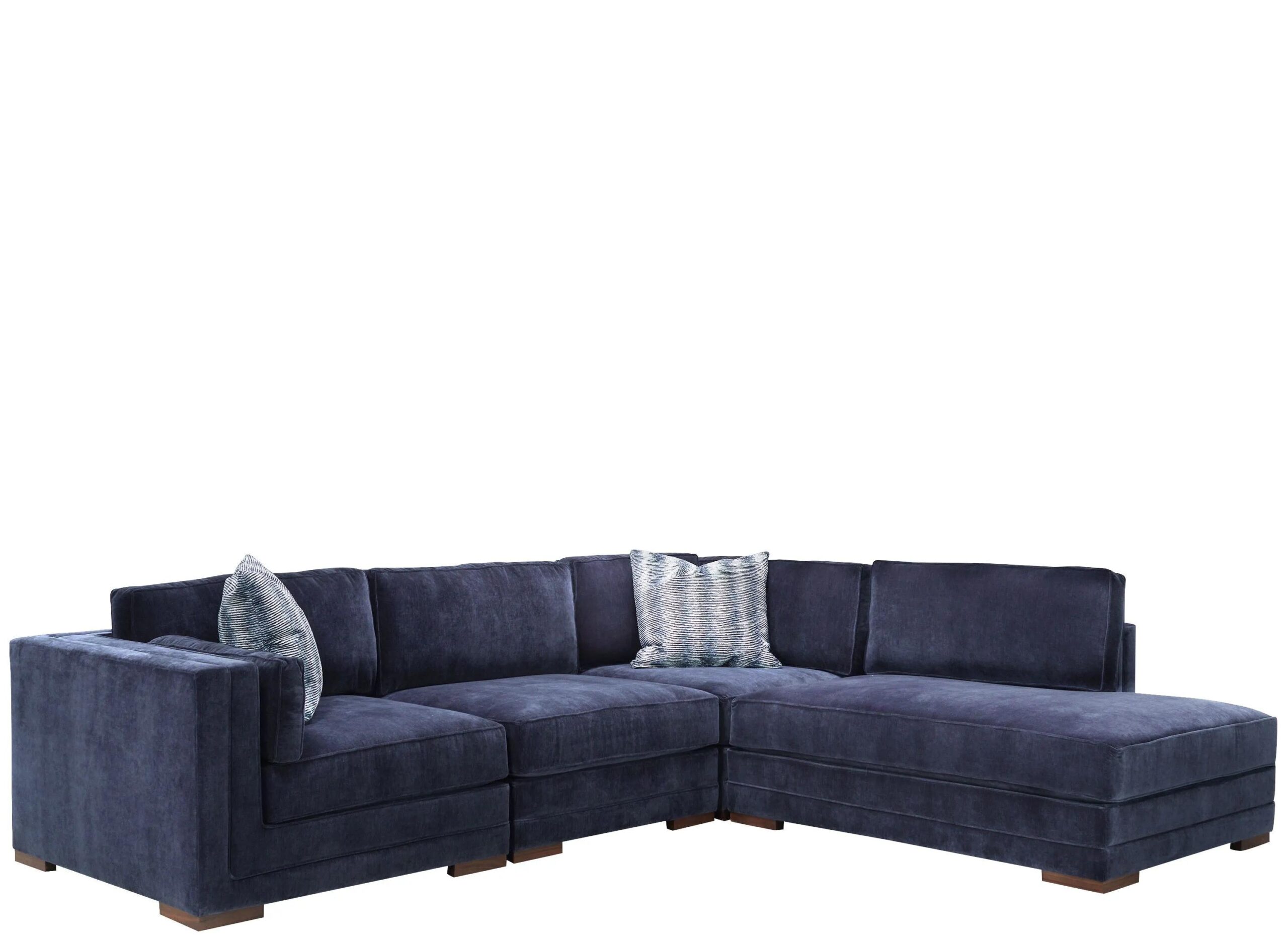 Imagine coming home to the soothing softness and super spacious comfort of the Remmi 5-pc. sectional. In rich indigo chenille, this sectional’s low profile and bold squared lines are emphasized by inverse welt detailing up the arms and around the back.