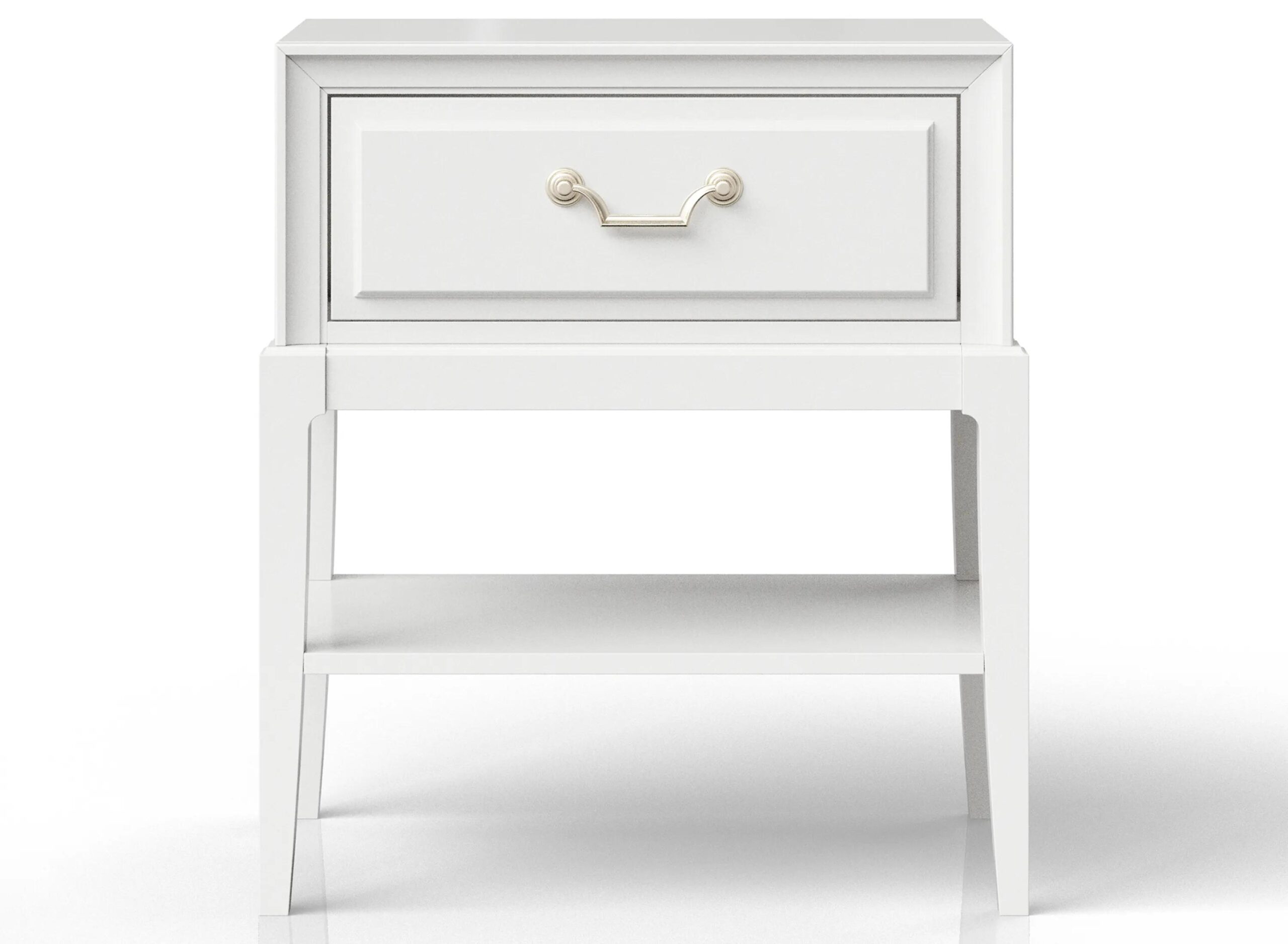 Introducing the Renascence 1 Drawer Nightstand – a stunning fusion of modern urban elegance and practical functionality. With its pearlized white finish, this nightstand is the epitome of contemporary sophistication, adding a touch of luxury to any bedroom decor.