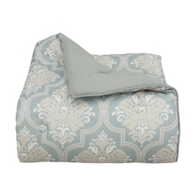 Experience the allure of timeless design with the Tranquility Comforter Set. This luxurious bedding ensemble features a grand-scale damask pattern in stunning shades of aqua, cream, and gold hues. The comforter is the perfect weight for all-seasons and it includes 2 coordinating pillow shams.