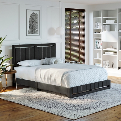 Roza Queen Upholstered Linen Platform Bed, Black