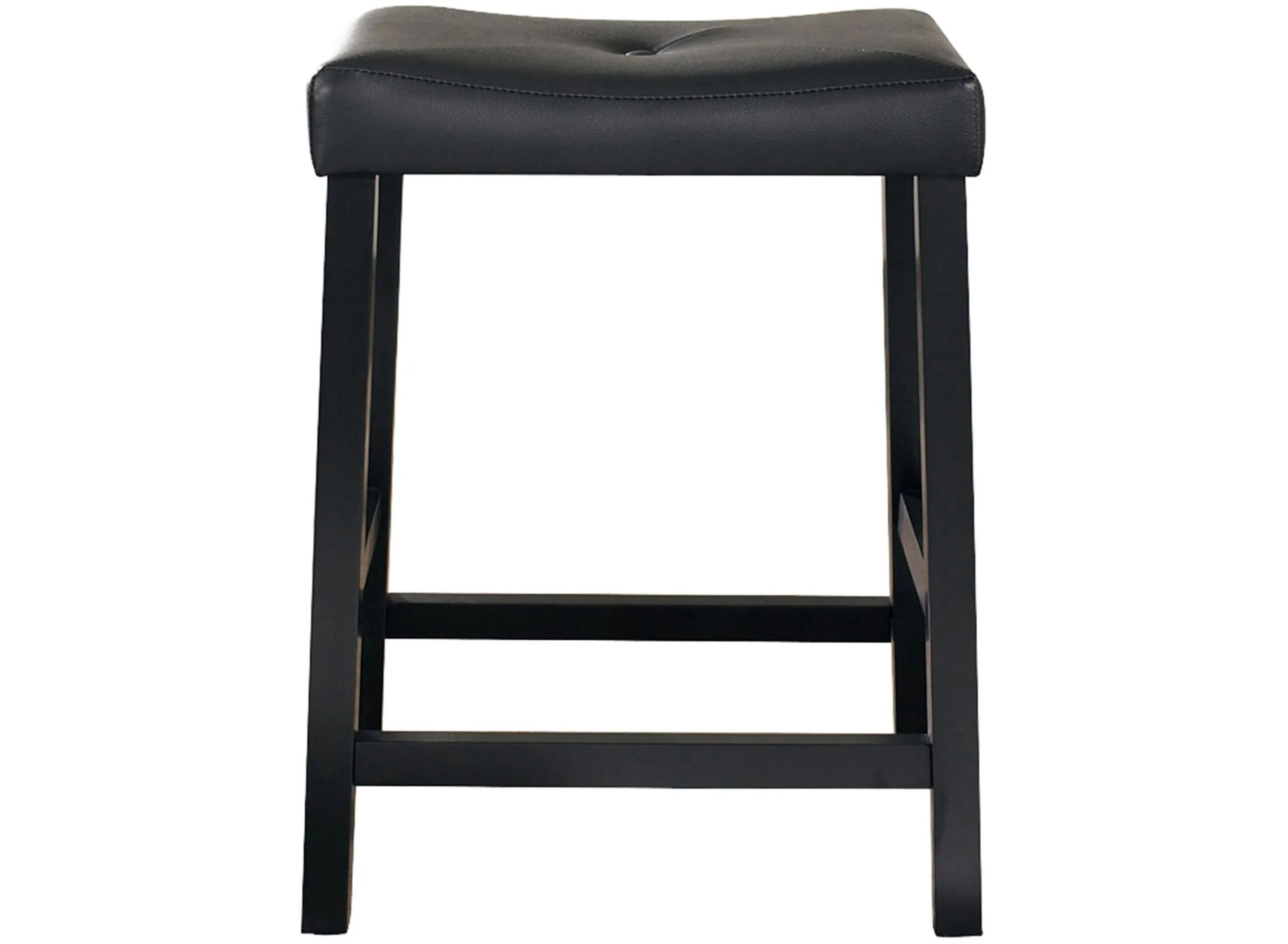 Simplicity and comfort are hallmarks of the Saddle Seat 2-pc. Counter Stool Set. The curved seat is upholstered in a durable yet stylish faux leather, making it resistant to spills and stains. With a seat height of 24 inches, the Saddle Seat 2-pc.