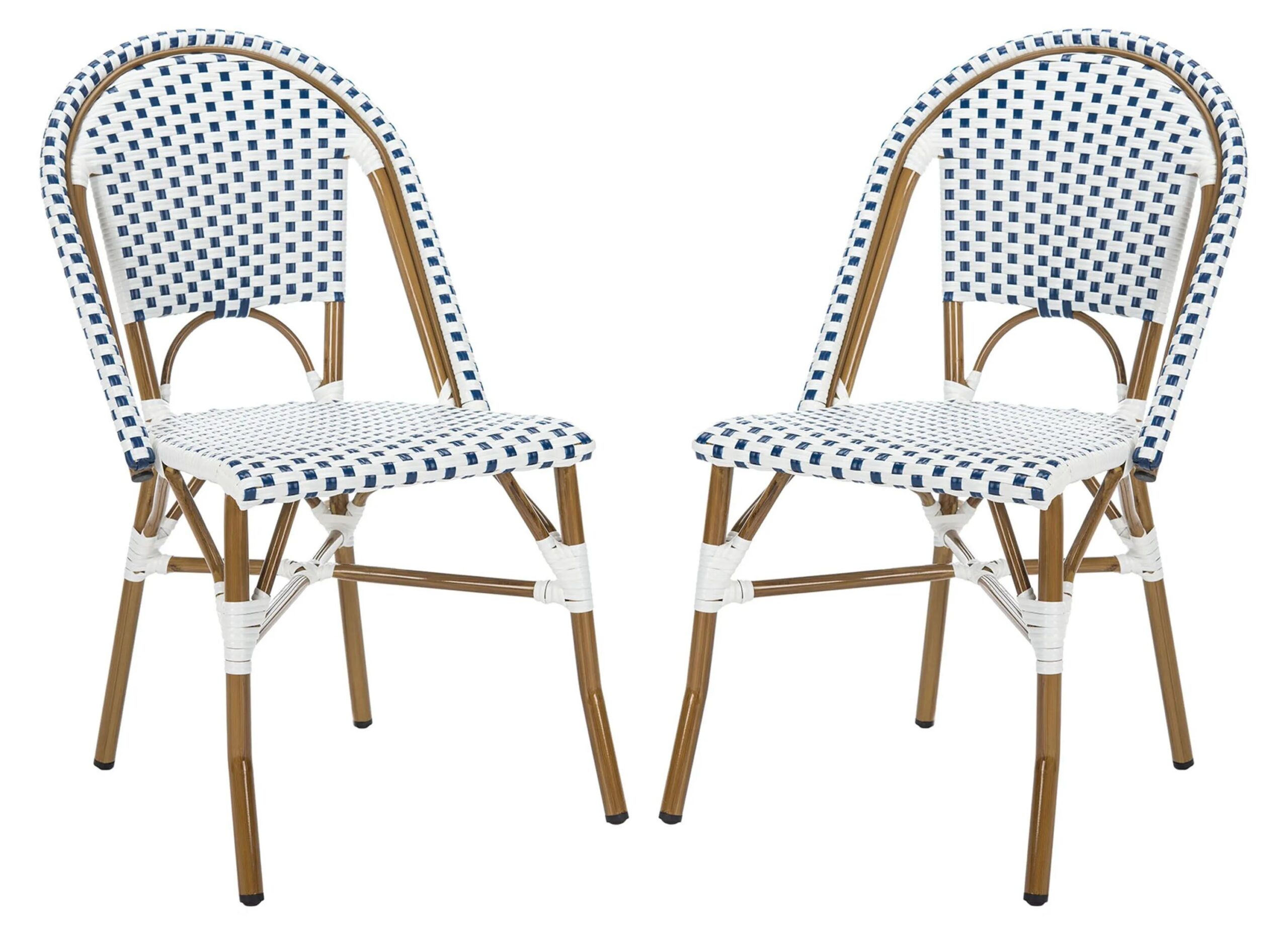 Whether your style is country or coastal, the Salcha Indoor Outdoor Side Chair is a colorful solution to extra guest seating. Inspired by classic European bistro chairs, Salcha is crafted of blue and white PE wicker and aluminum faux bamboo for easy care.