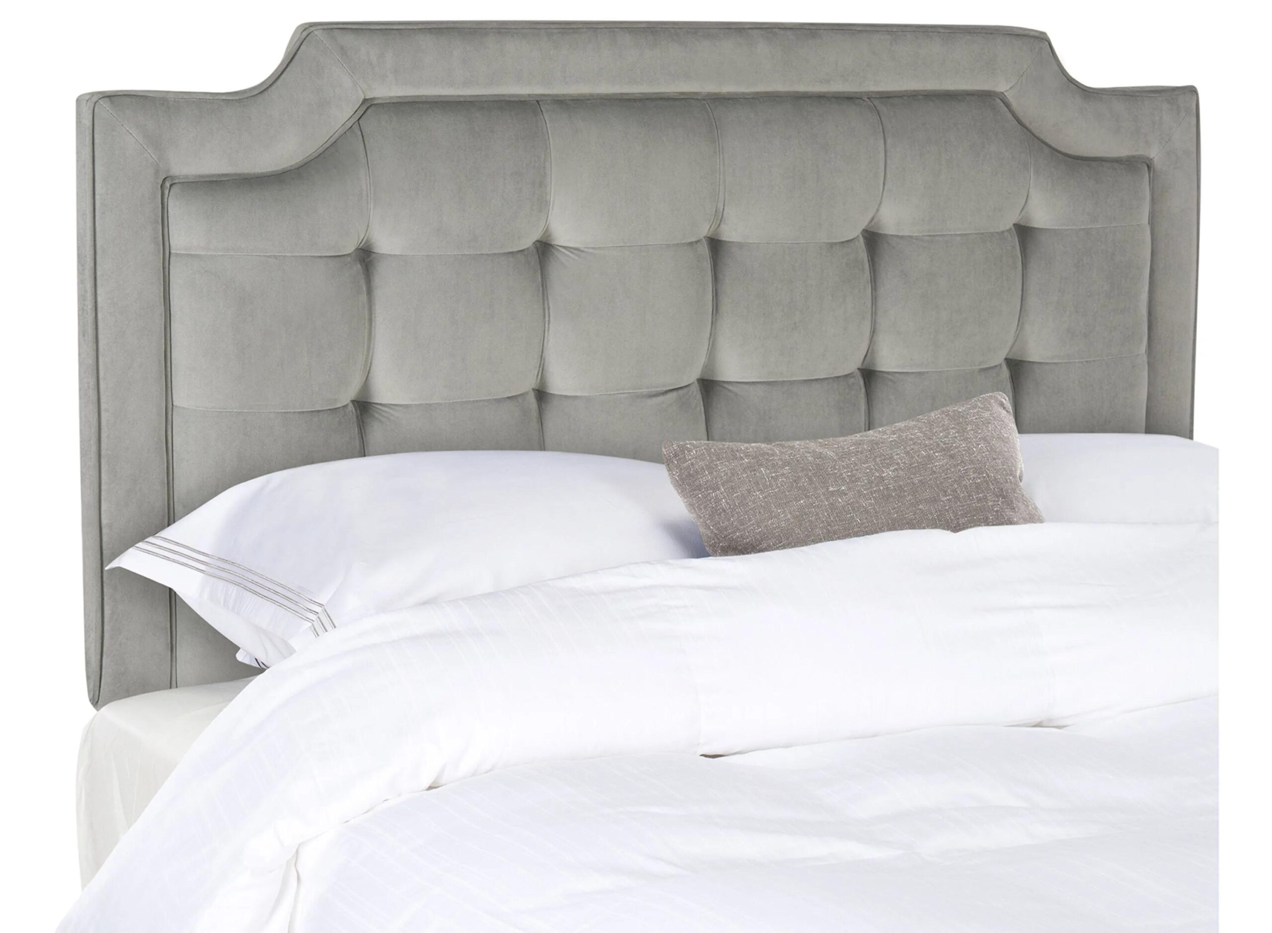 Relax and unwind with the soothing tones and sumptuous materiality of this modern Sapphire King Upholstered Headboard. Designed for creating the ultimate bedroom escape, its soft curves are upholstered in plush pewter fabric generously tufted to create a quiet surround of calm.